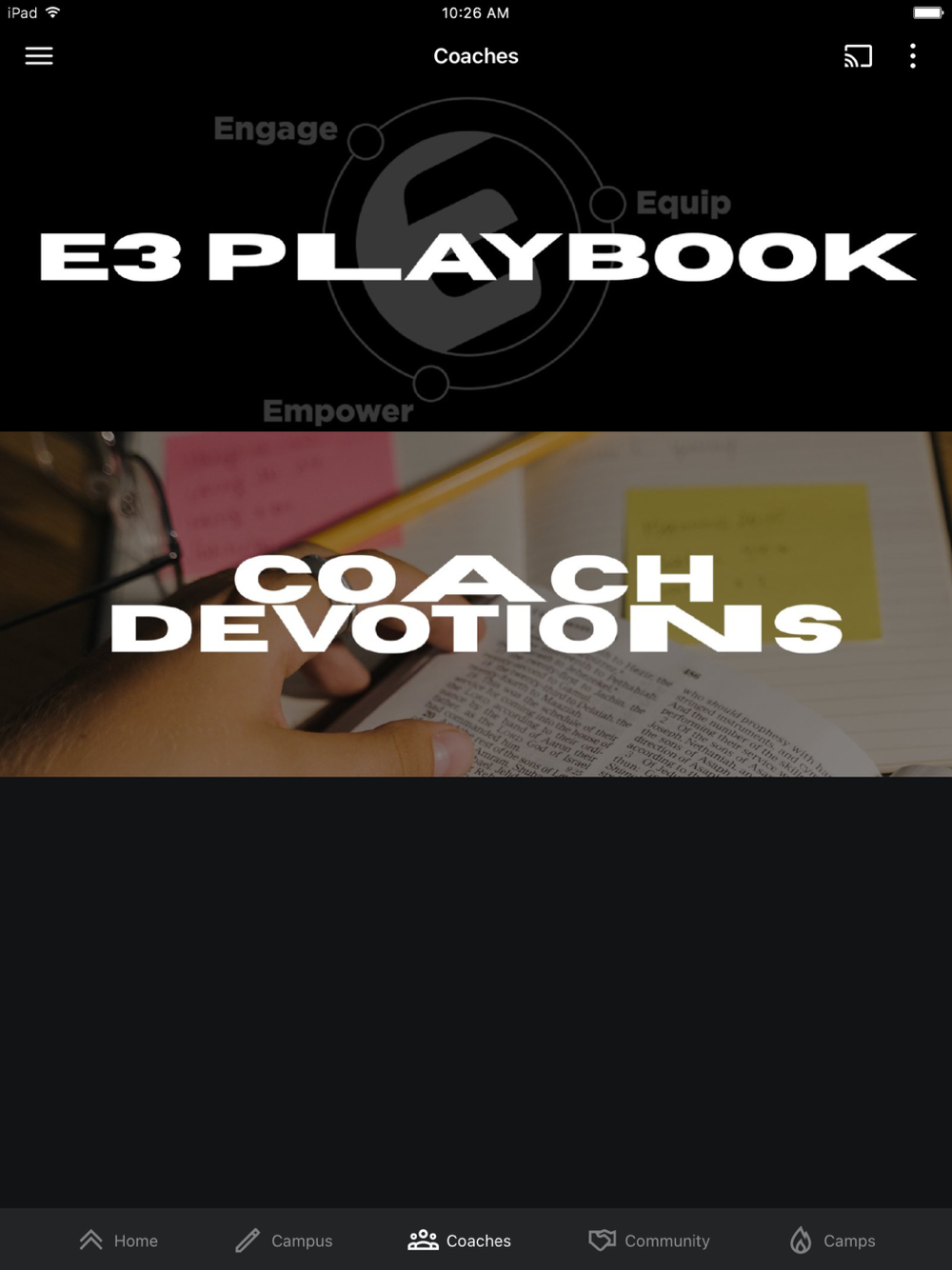 - Get access to the E3 Playbook and coach devotions