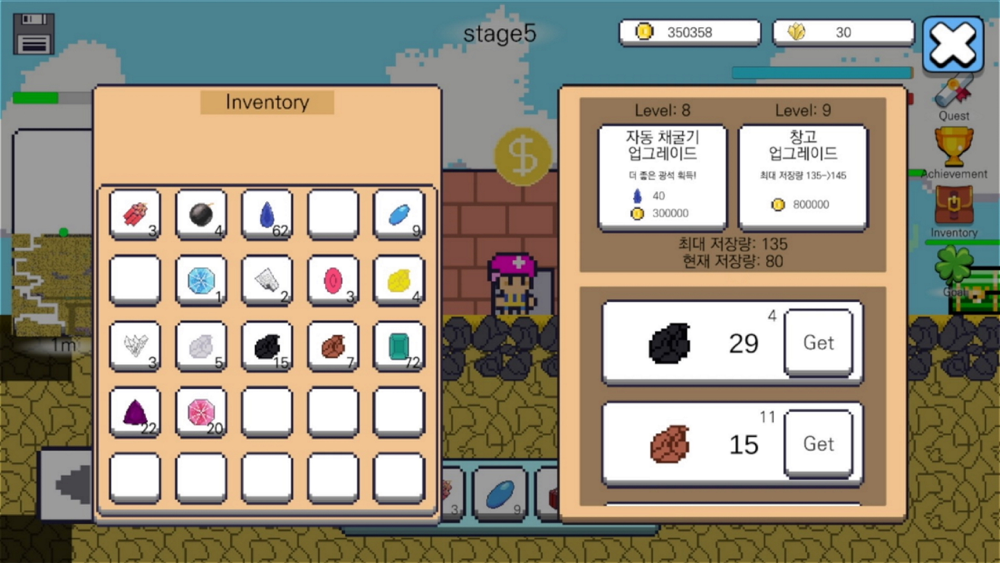 - 드릴로 땅을 뚫고, 돈을 벌어 드릴과 모자를 업그레이드!