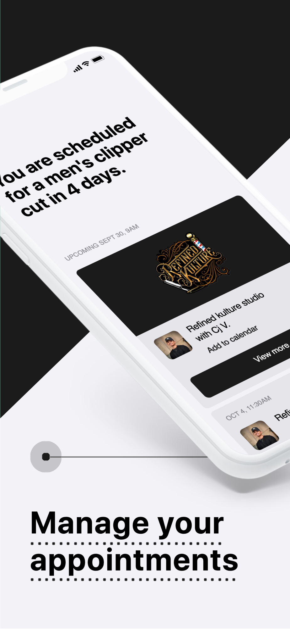 Our app lets you book and pay for a haircut or shave in a few taps.