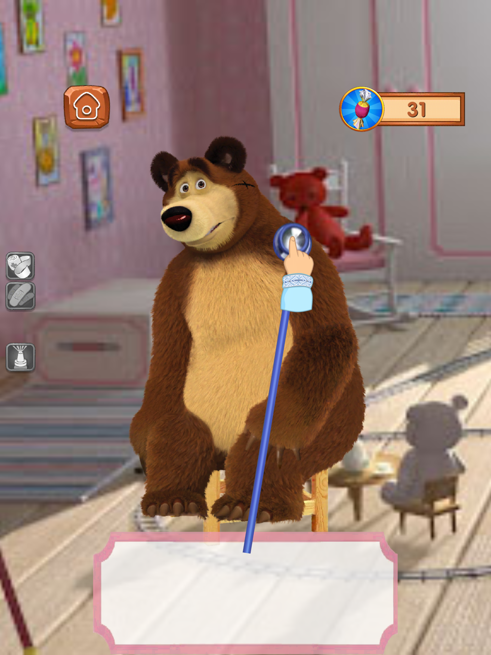 Let's go with Masha and the Bear to the vet hospital to cure animals! Masha knows how to cure any illness, but she needs somebody to help her. But who could help Masha to cure animals, even if the Bear is sick? Try our funny game and help Masha to cure animals. Play and have fun with the favourite characters of Masha and the Bear!