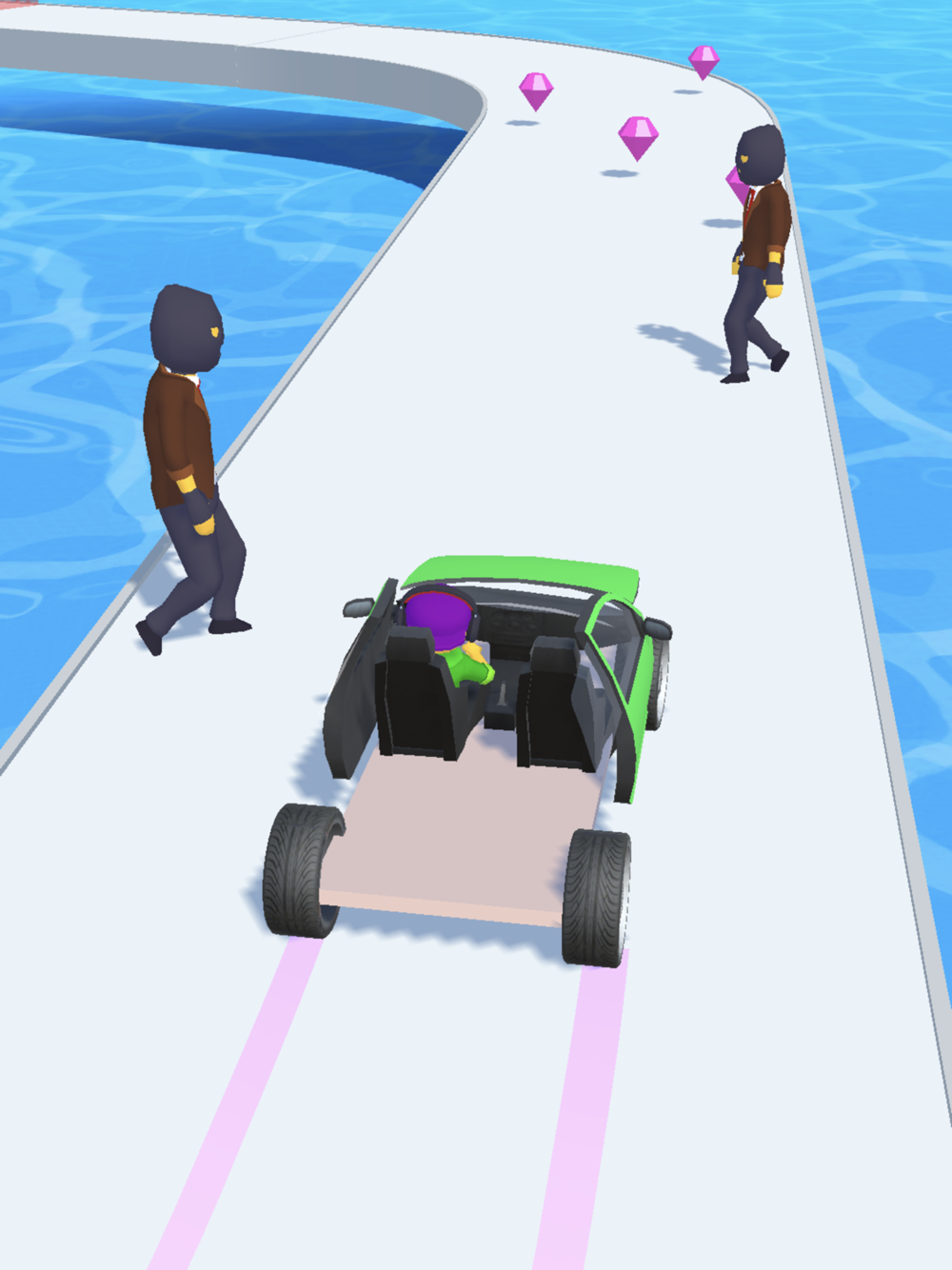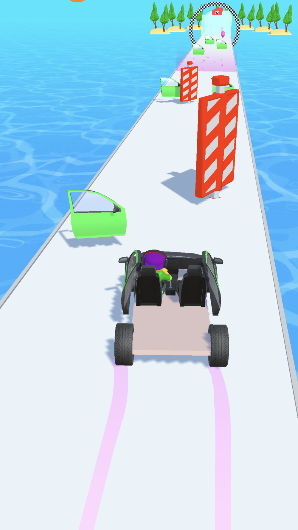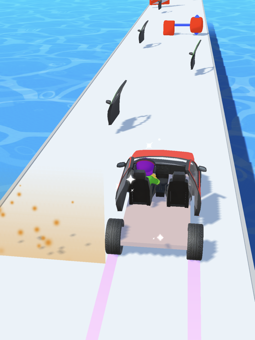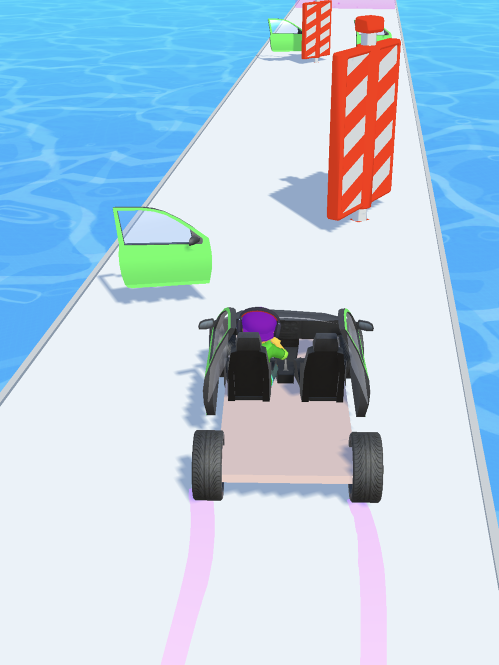 Assemble parts of the car as you go along to grow your car and reach the finish line! Beware of the enemies on your way!