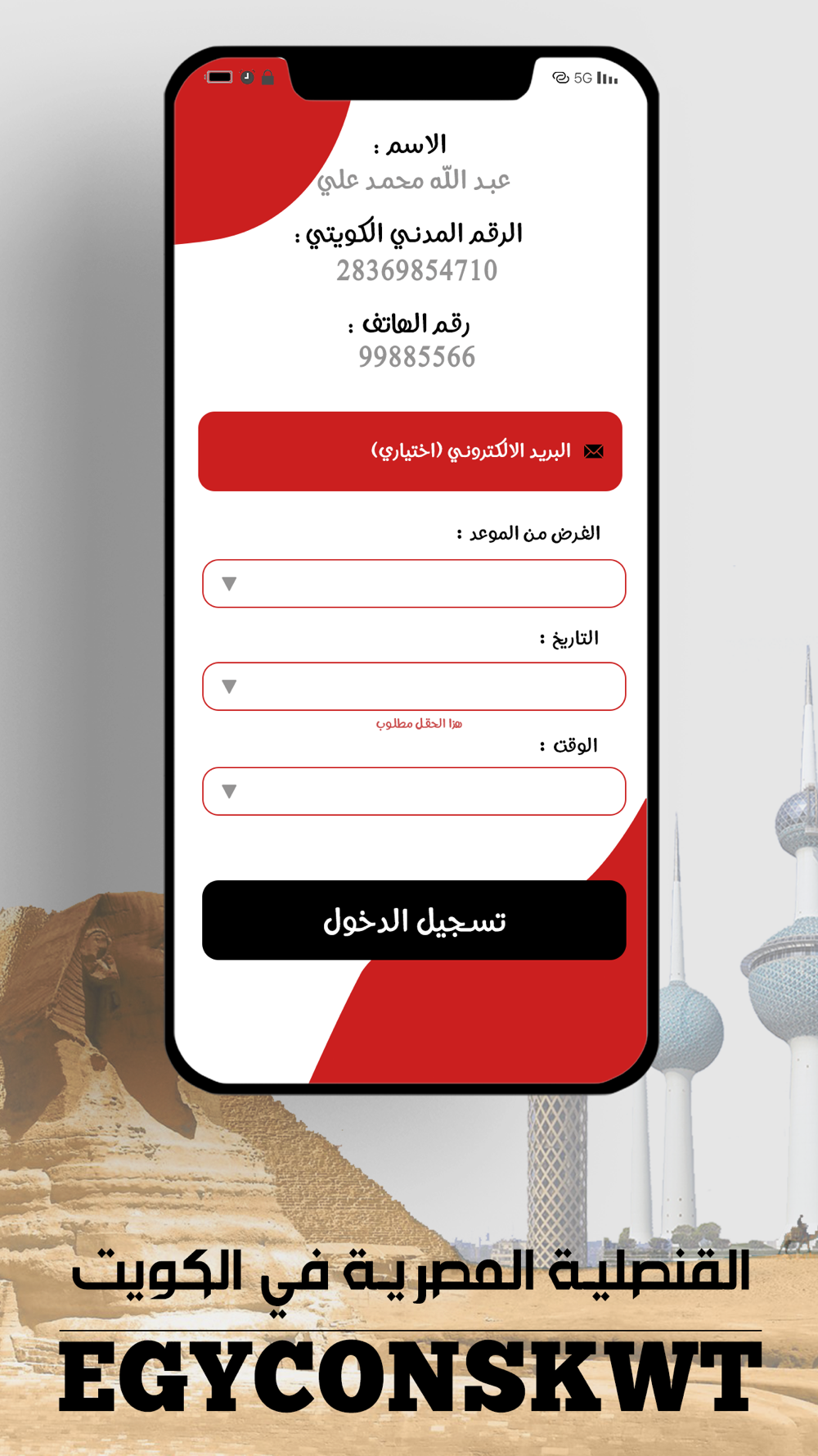 تطبيق للخدمات الإلكترونية الخاصة بالقنصلية المصرية بدولة الكويت