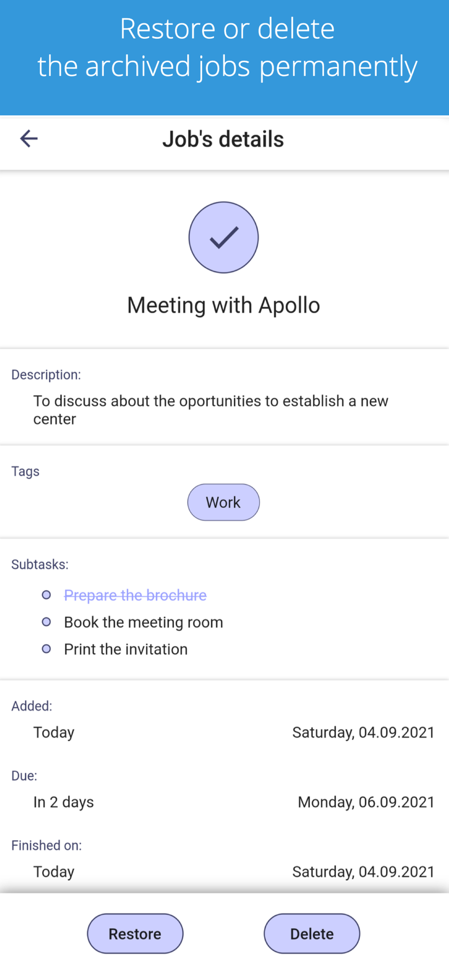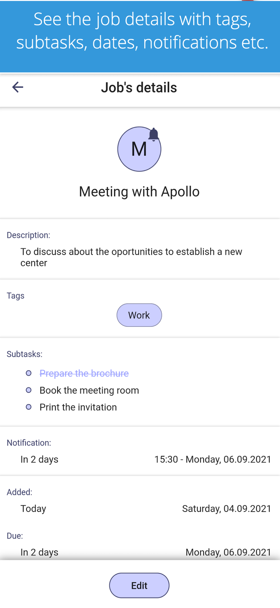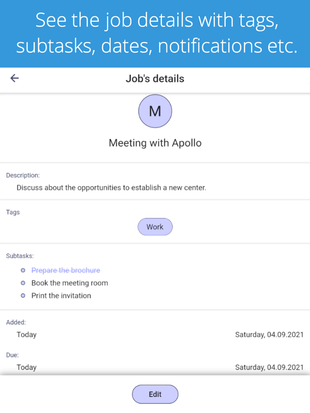 ASSIGN TAGS FOR JOBS: You can choose to assign one or more tags for jobs such as Work or Personal, etc. You can also filter jobs by tag.