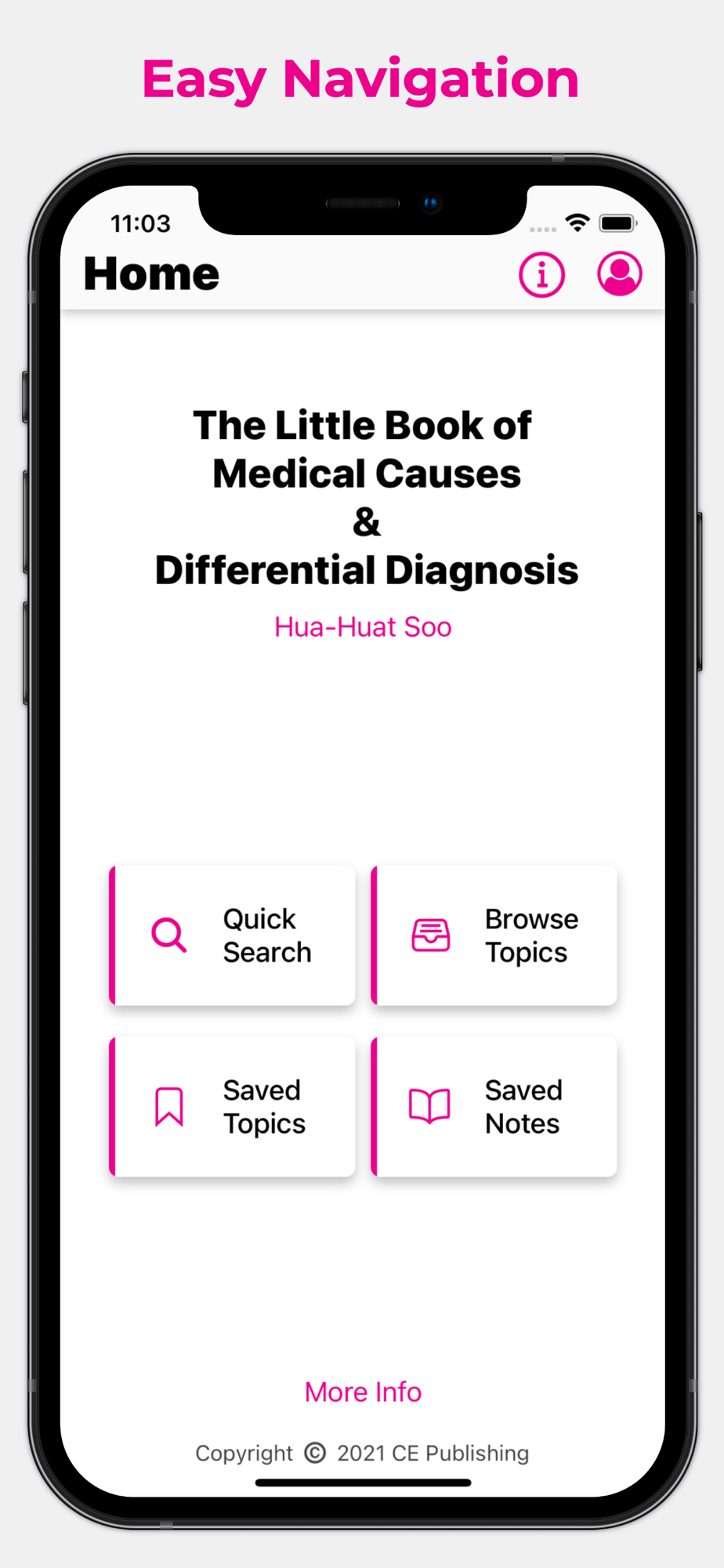 This App contains added features like easy navigation between topics, quick search, bookmark, and personal notes saved across multiple devices, to let users access information at their fingertips.