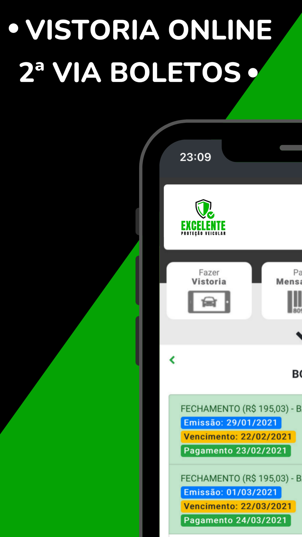 Com o novo app da EXCELENTE, ficou mais fácil emitir boletos, visualizar veículos ativos, regulamento, benefícios e muito mais.