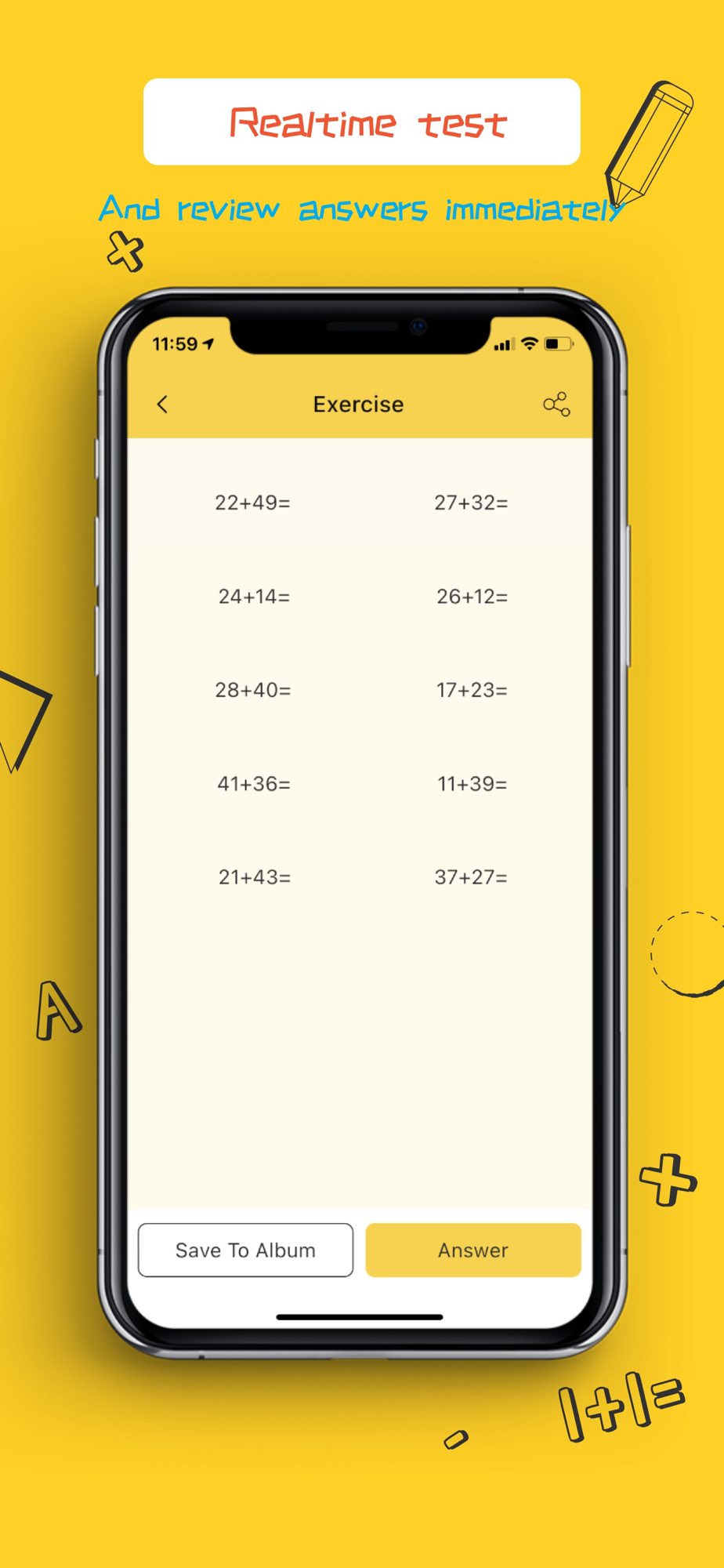 - Generate arithmetic exercises for your children: Teachers or parents can adjust various levels of difficulties and generate a set of exercises for kids. Math Junior supports online tests or you can also save the exercise to album, print and practice it later.