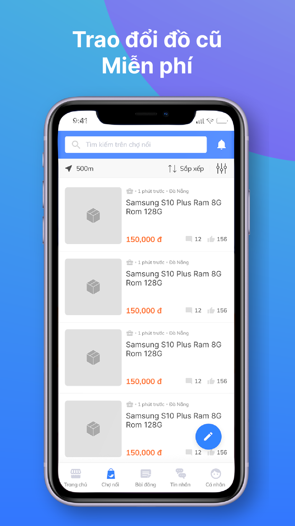 Đăng tin mua bán miễn phí. Ứng dụng hỗ trợ ở tất cả các danh mục khác nhau từ bất động sản, điện thoại, xe máy, vật nuôi....