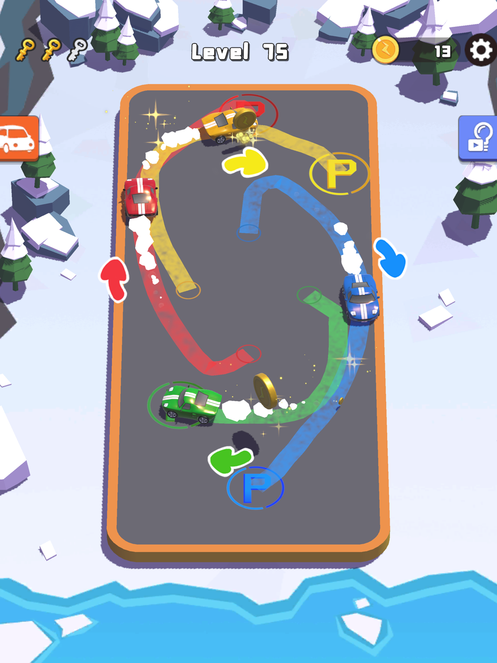In this game, you need to draw the best path on the flexible and crowded track to park your cars in the parking spaces with sliding your finger, just hurry up!