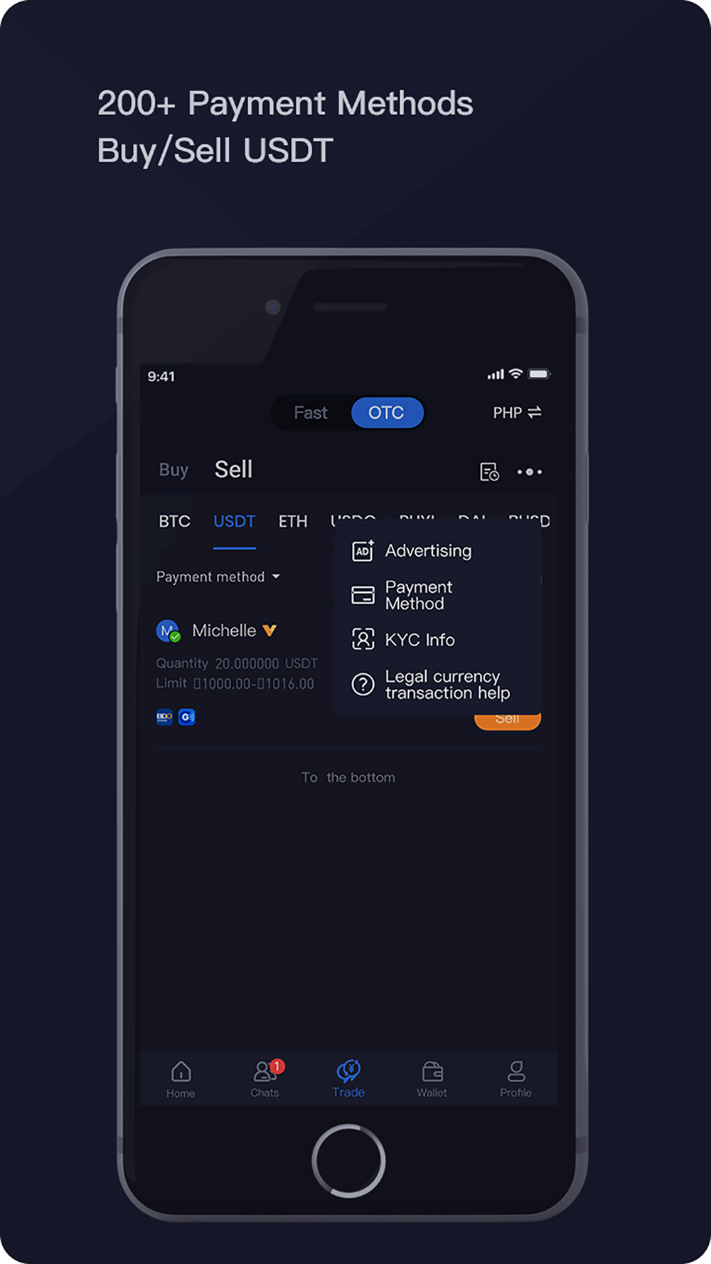 “如意钱包”为您提供一个安全的OTC(场外交易)环境,通过平台的KYC&AML,让您可以轻松的进行主流加密货币与法定货币的C2C兑换,如比特币,以太坊,波场,莱特币以及其他ERC20和ERC721的多种代币。