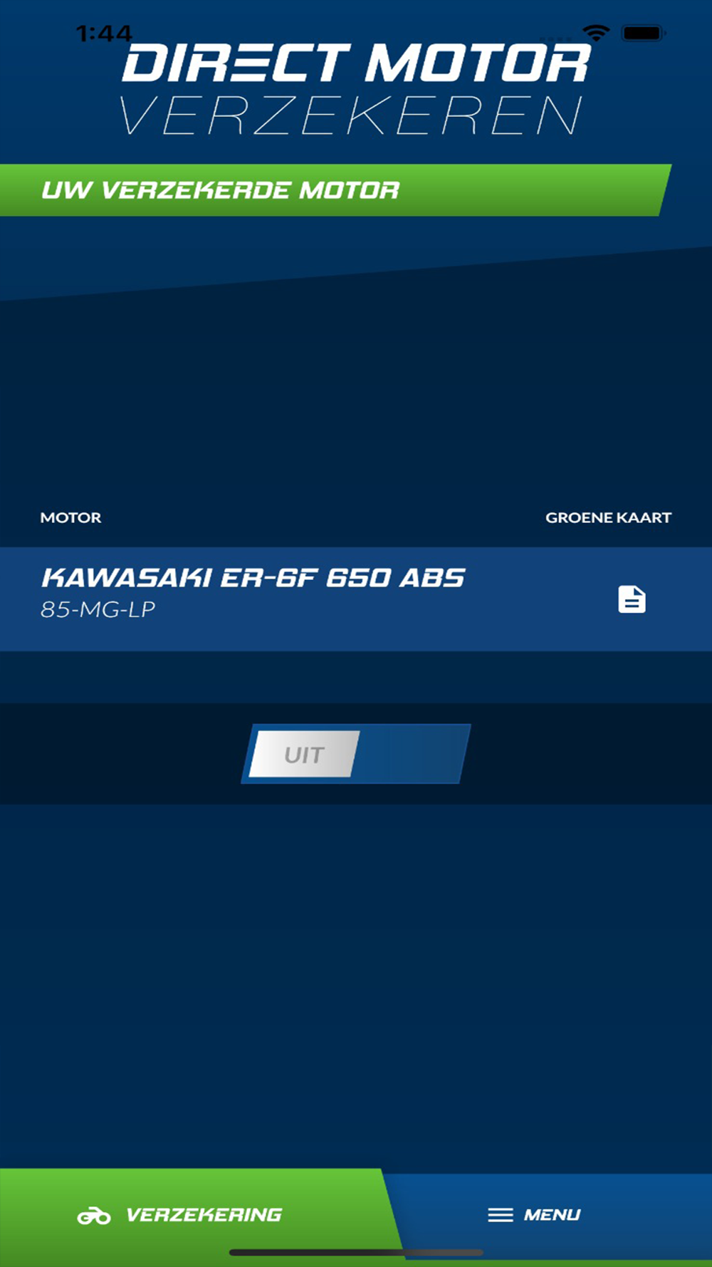 Meerdere motoren bij ons FLEX Casco verzekerd? Geen probleem! Je ziet ze allemaal in deze app onder elkaar staan en je kunt ze afzonderlijk van elkaar aan- en uitzetten.