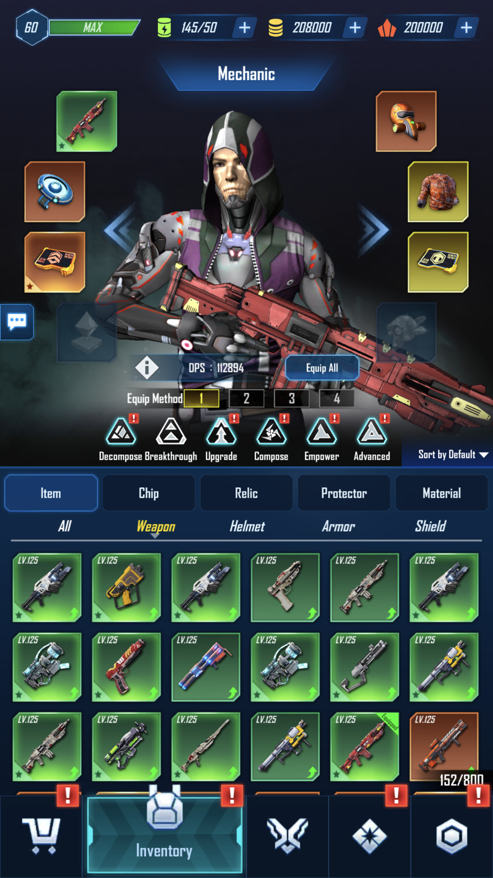 Weapons, helmets, armors, shields, chips, relics, protectors…..equip as you favor!