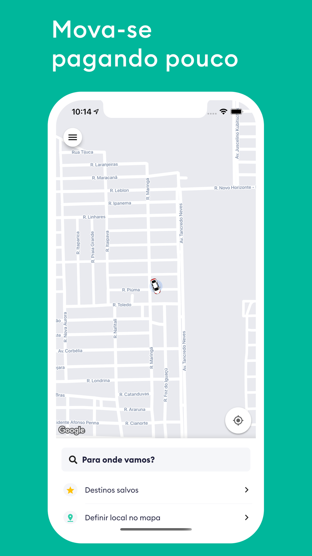 1. Abra o app e defina um destino;
