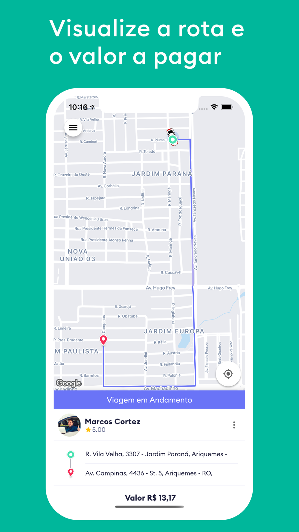3. Acompanha a localização do seu motorista em tempo real no mapa;