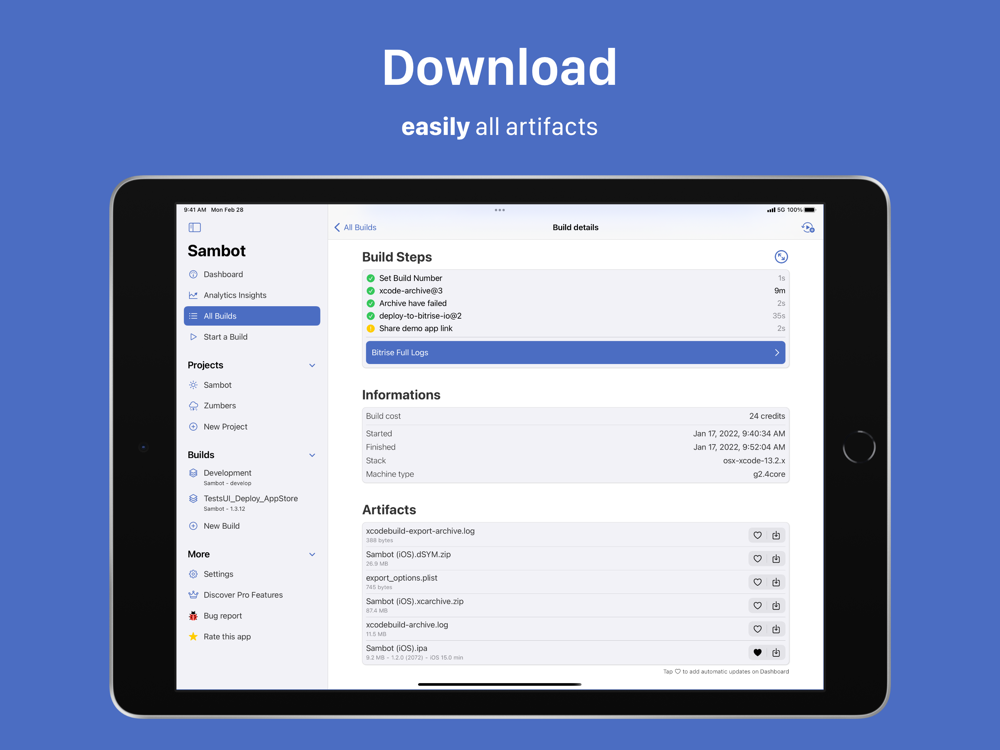 Sambot is an unofficial Bitrise client who helps you to be more efficient in your CI experience!
