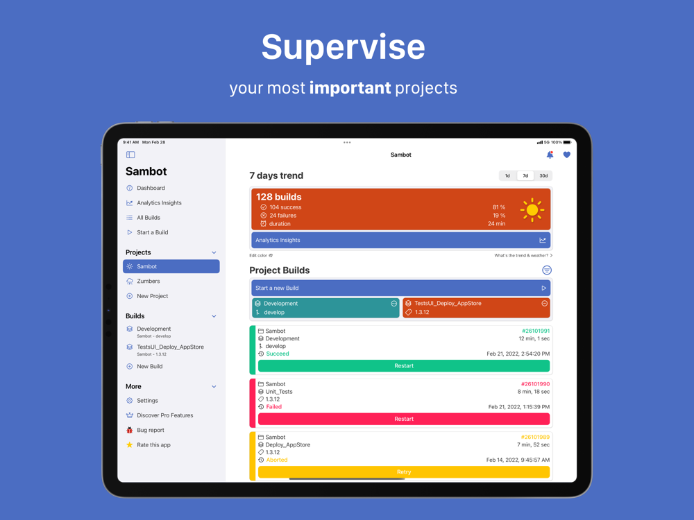 • Have Quick Access to your most important Projects and follow their Builds and Health at any time