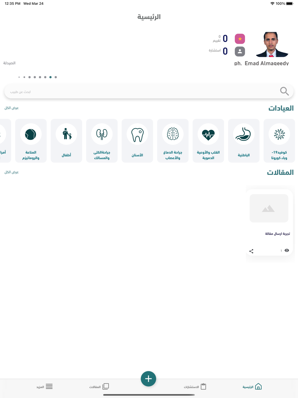 1- أضف طلب استشارة جديدة من الواجهة الرئيسية للتطبيق ثم اختر تخصصًا معينًا من القائمة.