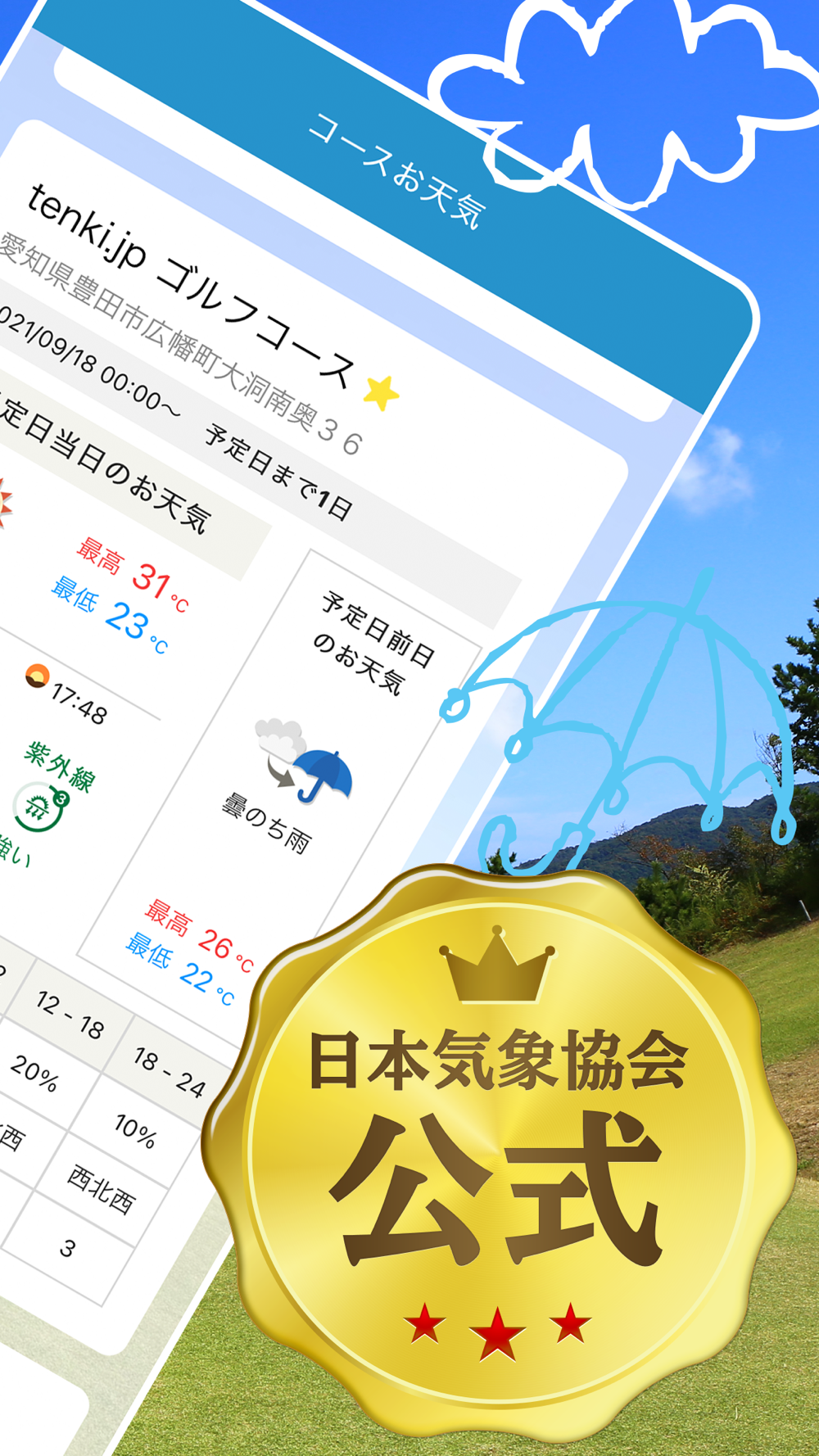 tenki.jp ゴルフ天気は、日本気象協会公式のゴルフコースの天気予報アプリ(有料※)です。