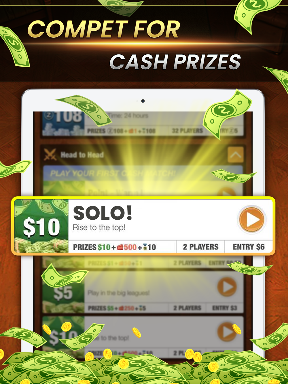 Compete 1v1 games for fun, for cash, or both! Our cash prizes are redeemable via PayPal, Apple Pay, and more.