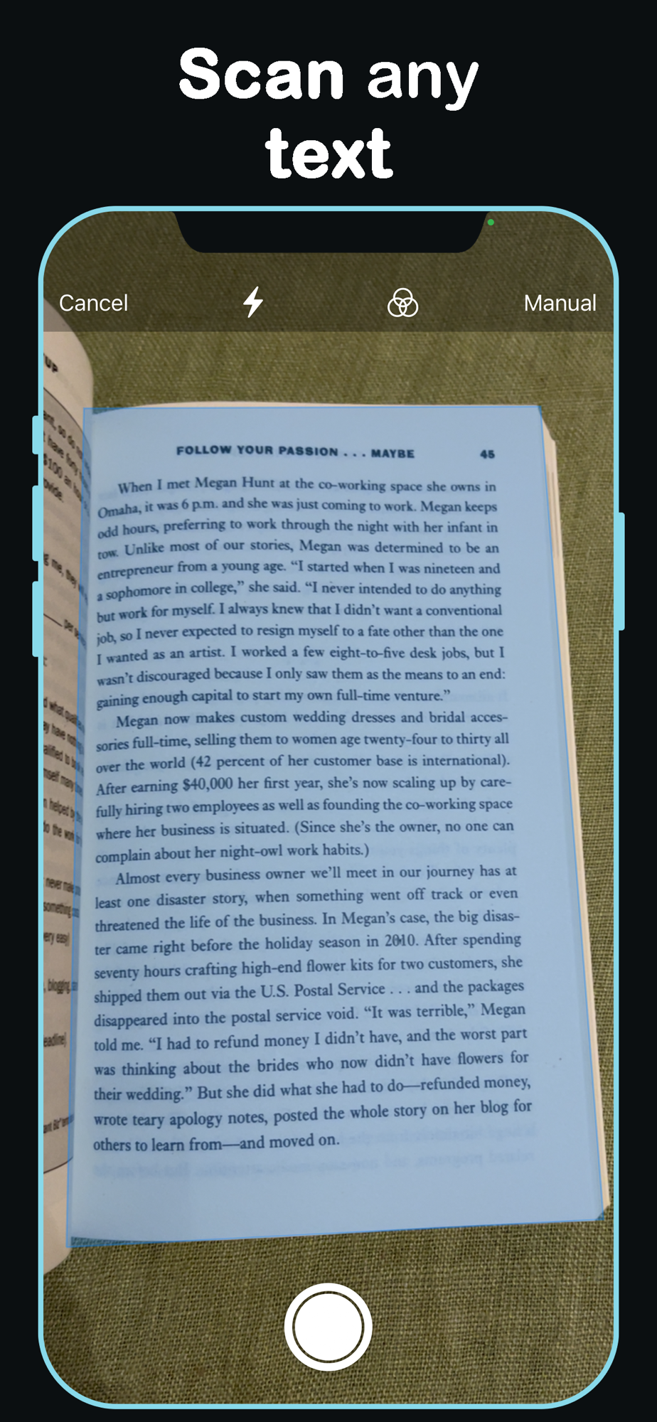 Listen to any text anywhere instead of reading. Save time by turning text into audio.