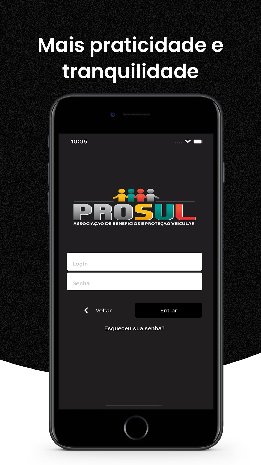 Para começar a usar o aplicativo é só fazer o download gratuito, utilizar seu CPF e senha fornecida pela ProSul.