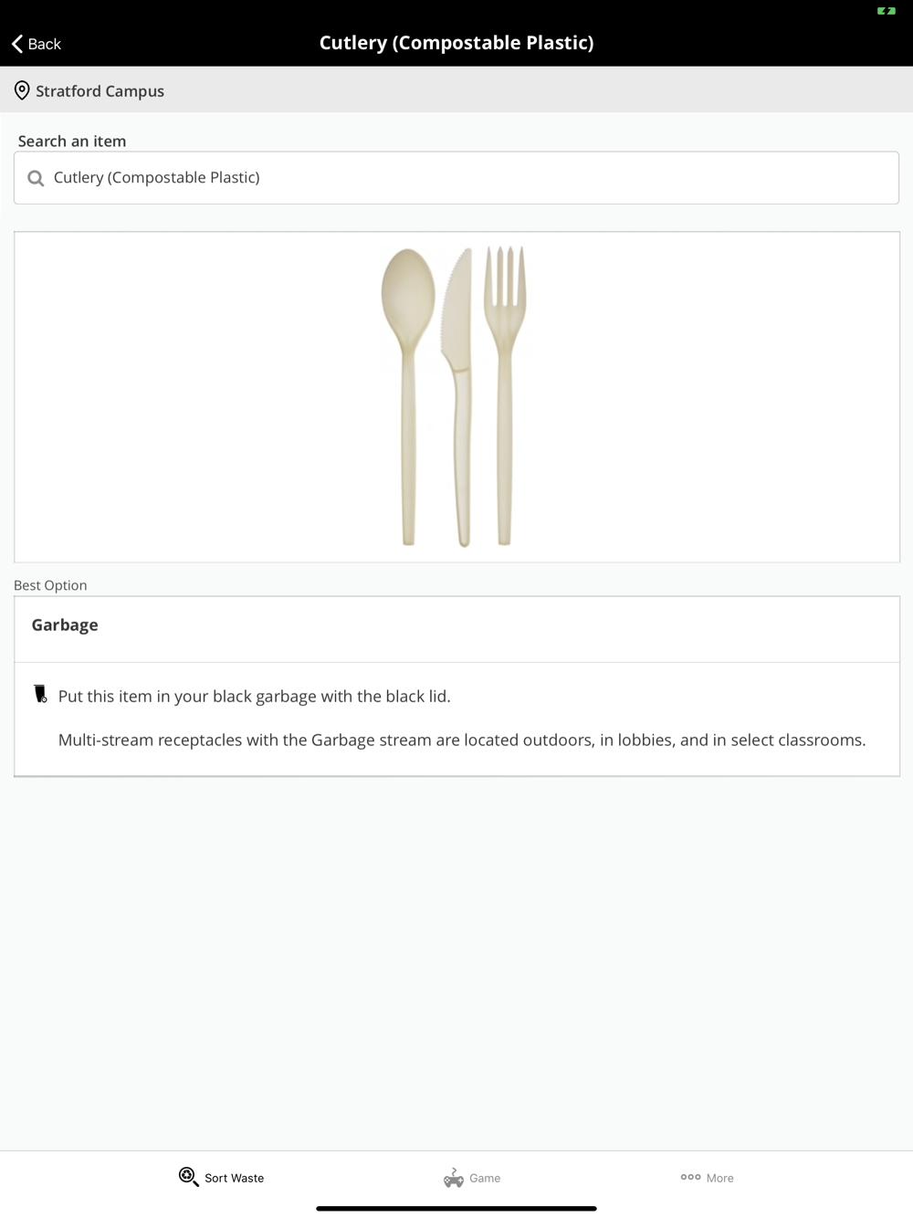 Search how to properly dispose of waste materials into the various waste streams (organics, papers, recycling, cardboard, garbage, donations and more) at the University of Waterloo.