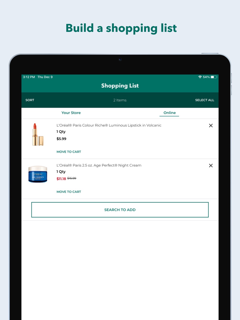 Coupon wallet. Organize all of your offers in one easy-to-access spot so you’ll never miss out on savings.
