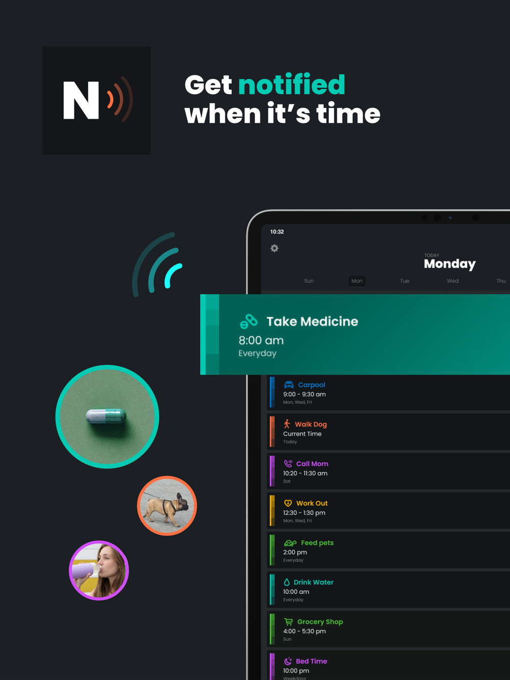Nudge alarms are easy to setup and a perfect way to give you a cue that it’s time to do “that thing” that you always forget. Nudge is NOT trying to replace your calendar – instead it’s a supplemental tool for those things you do often and could use a little nudge to remember.