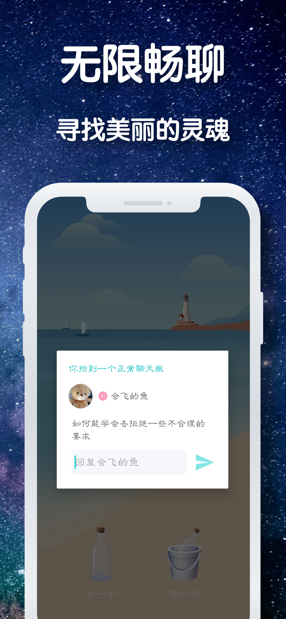 漂流瓶可以随缘偶遇小哥哥小姐姐。丢一个瓶子 一份期待。捡一个瓶子 一份惊喜。