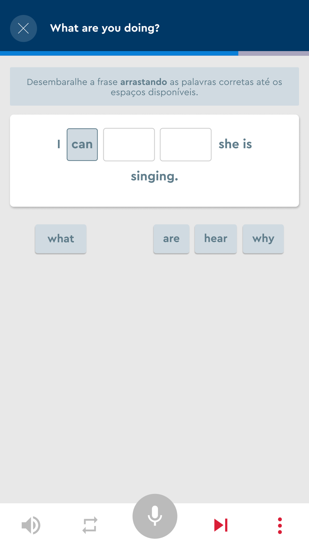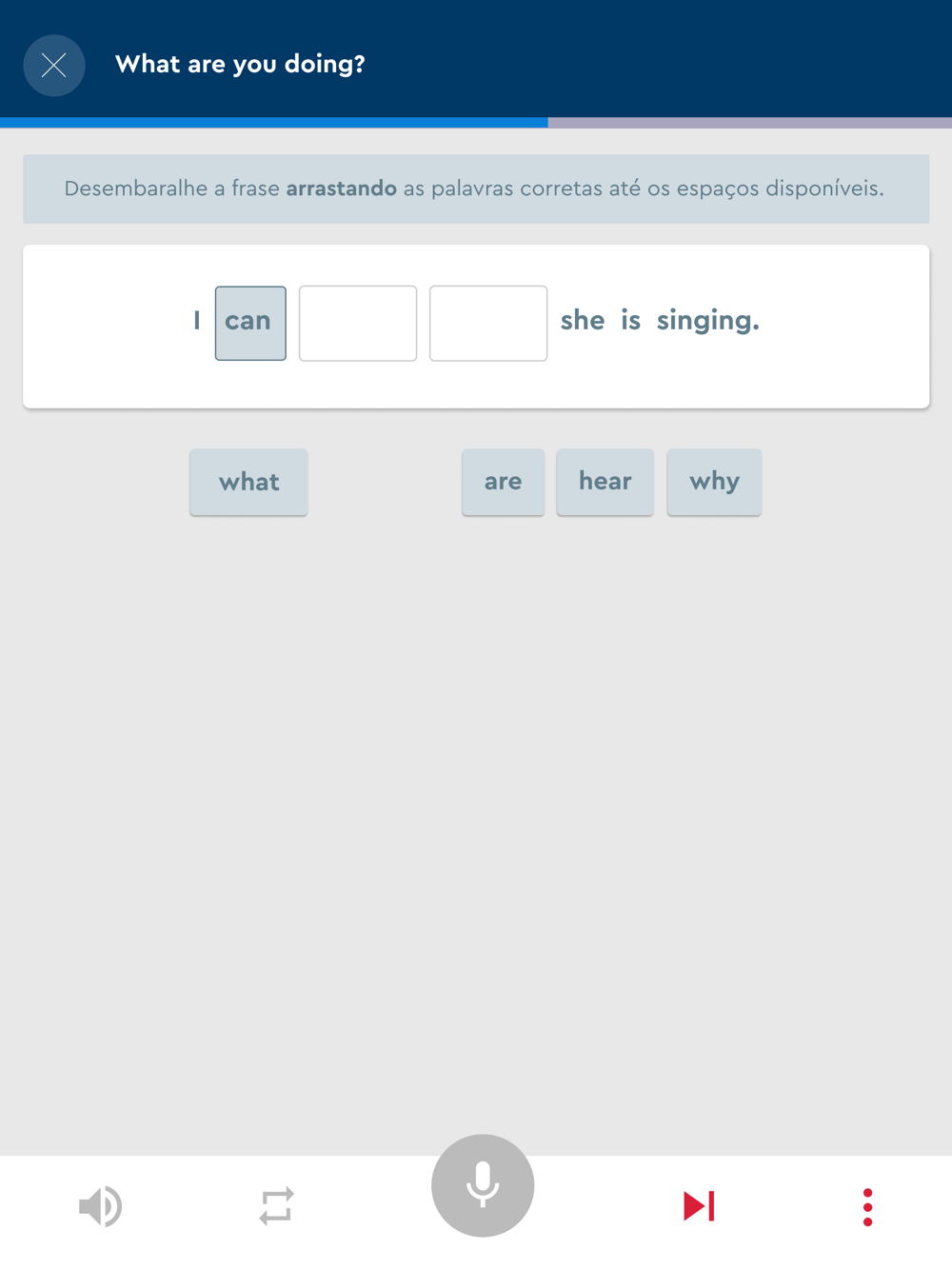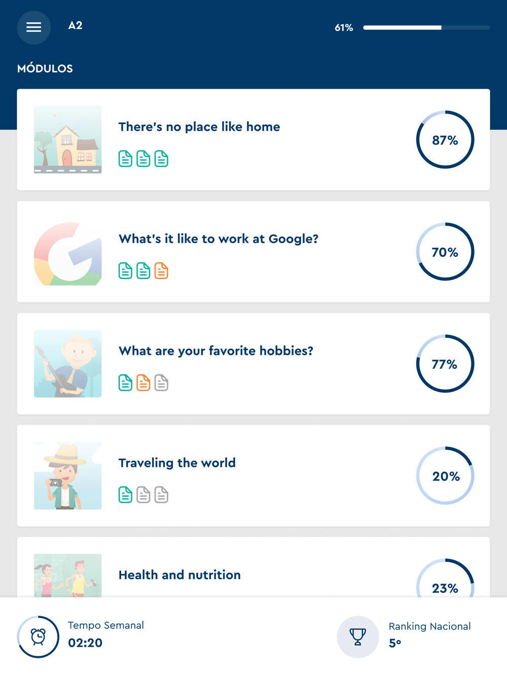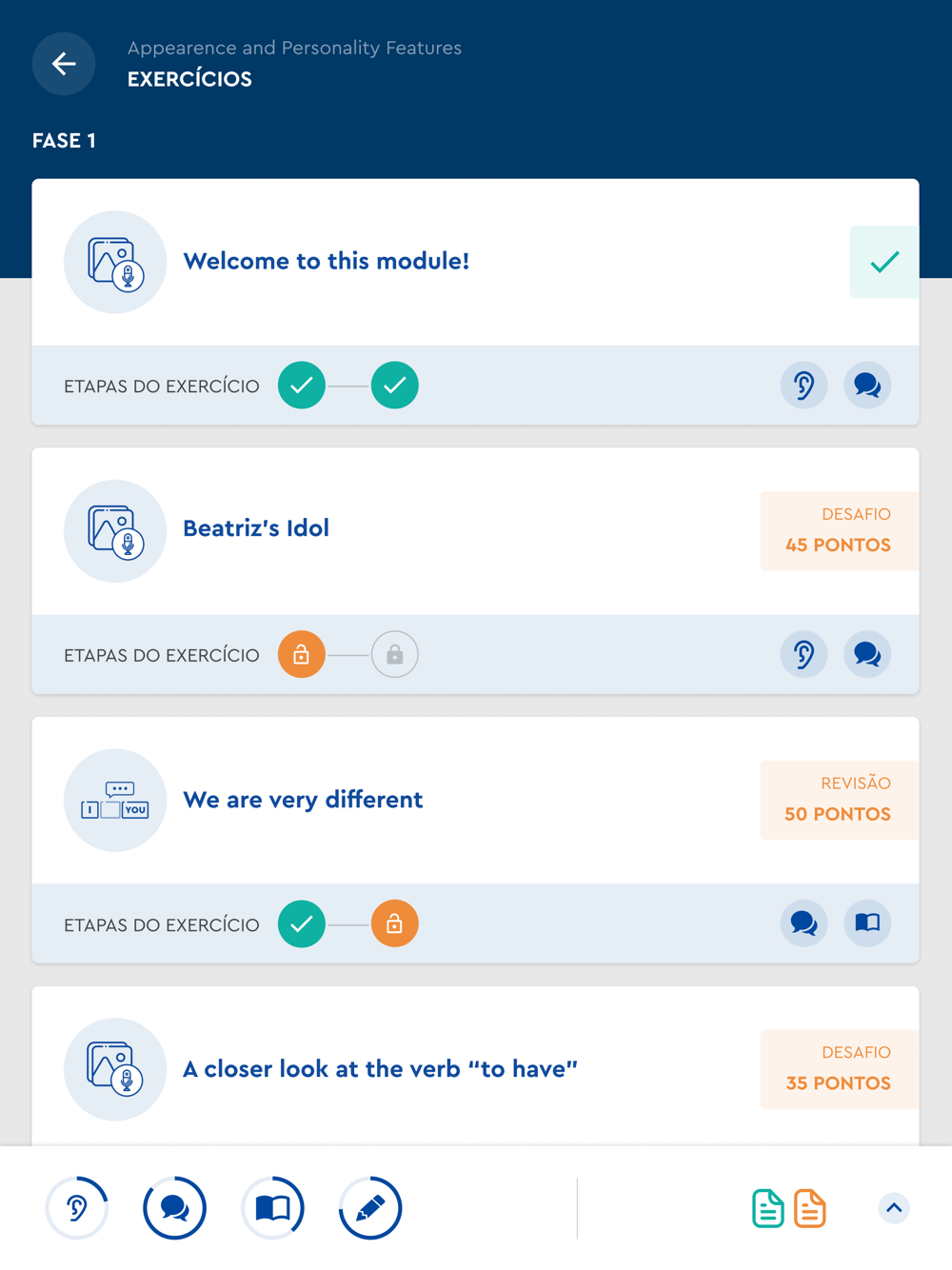 El alumno trabaja las 4 habilidades lingüísticas de manera apasionante y eficiente, priorizando el habla y la escucha en inglés. El habla del alumno es comparada con la pronunciación de más de cien nativos a través de nuestra poderosa herramienta de reconocimiento de voz.