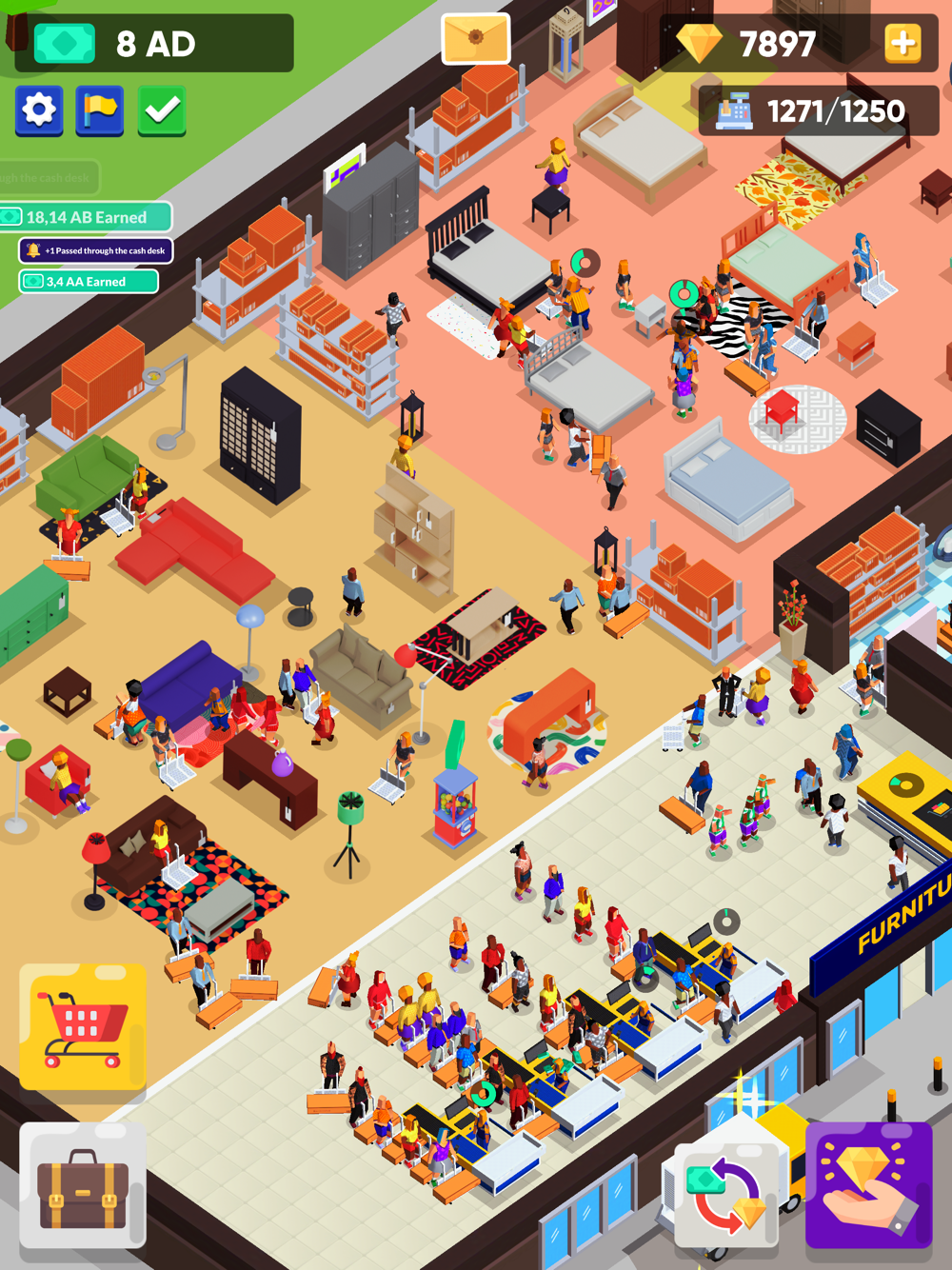 Let's start your Idle Furniture Store Tycoon today. You will make tons of money and build an deco shop empire.