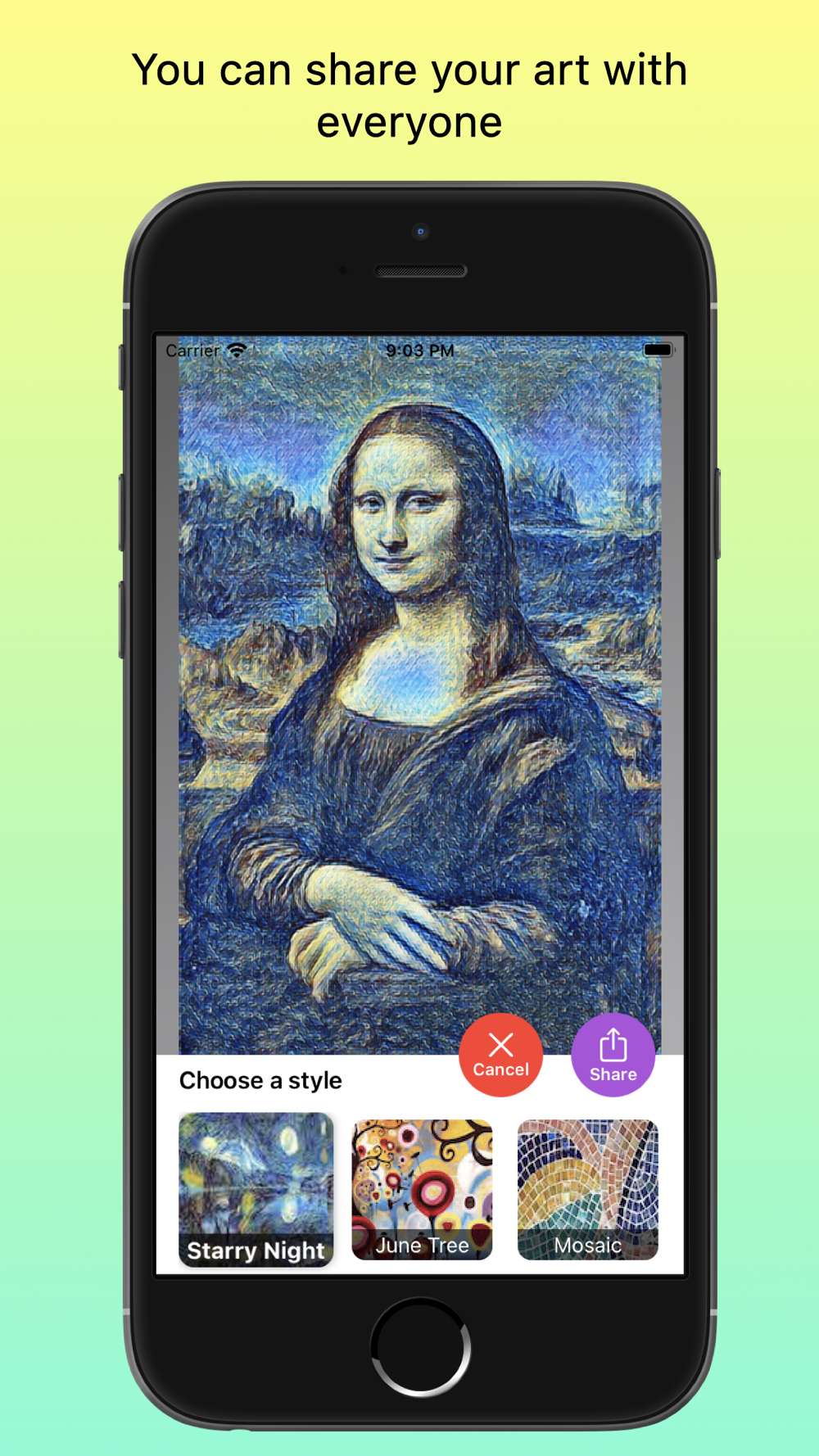 It connects directly with Facebook, Twitter, Instagram, etc... So you can share your art with everyone in one click
