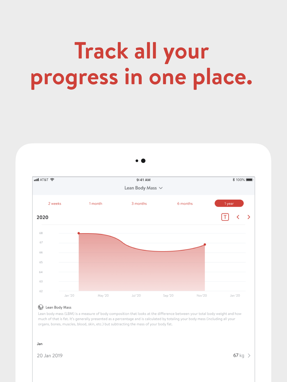 (Sync with Health app), Fitbit and Withings to sync body stats instantly.