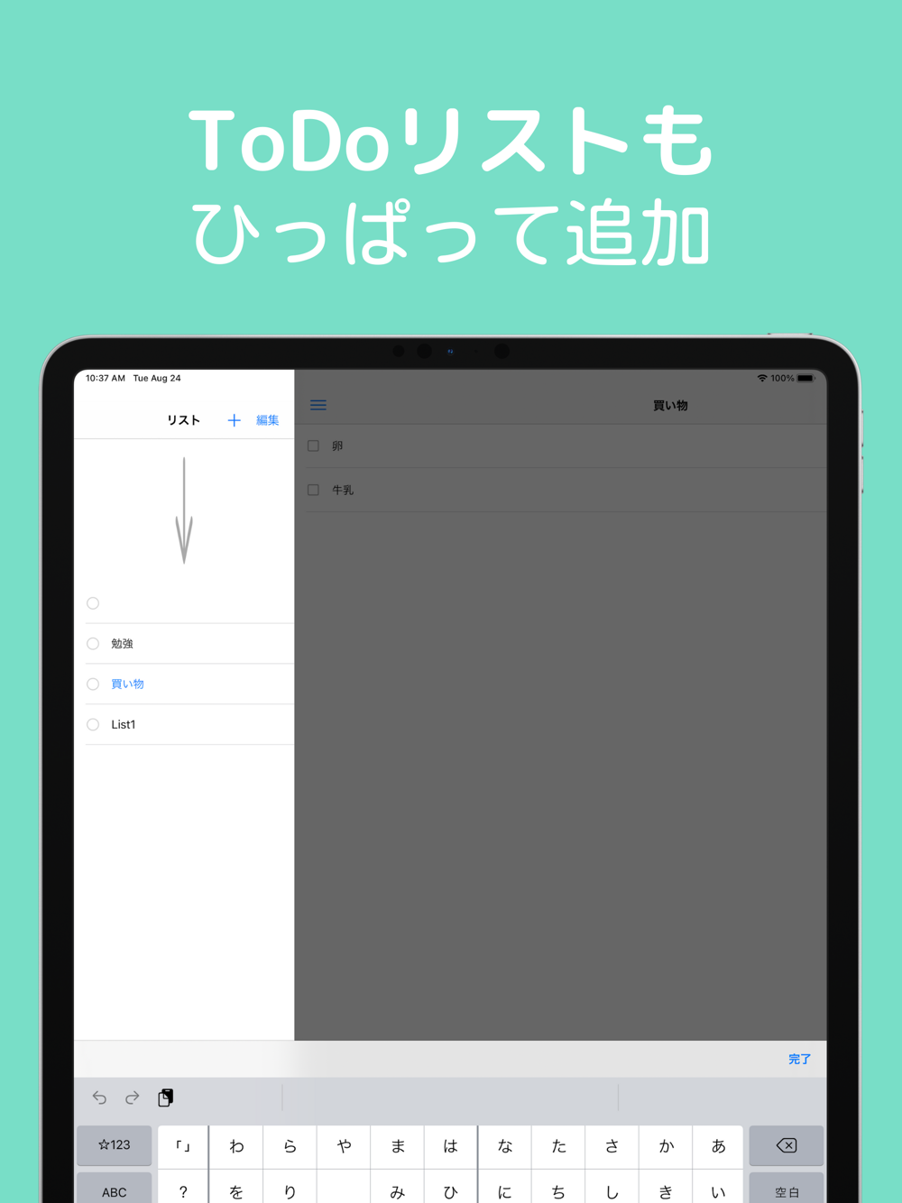 ・下に引っ張ってToDoを追加