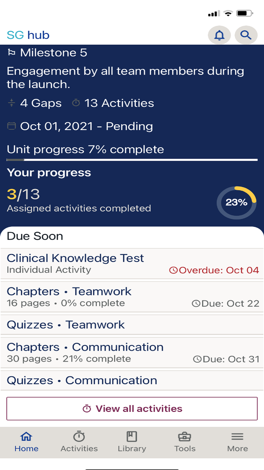 Easier, simpler, and streamlined, the SG hub provides access to information about the current (and past) Milestones, access to a library of chapters, ability to track gaps, logging and more, anywhere, anytime by downloading this App for IOS onto their iPad, iPhone or other compatible device.