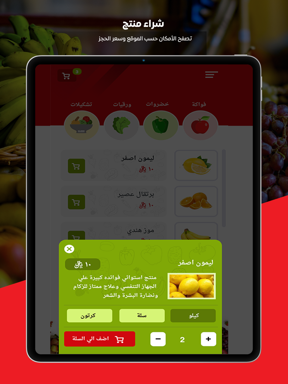 تطبيق احمر واخضر هو أول وأسرع خدمة توصيل خضار وفاكهة طازة و بتغليف صحي وفق أعلى معايير النظافة والتعقيم اون لاين لحد باب البيت