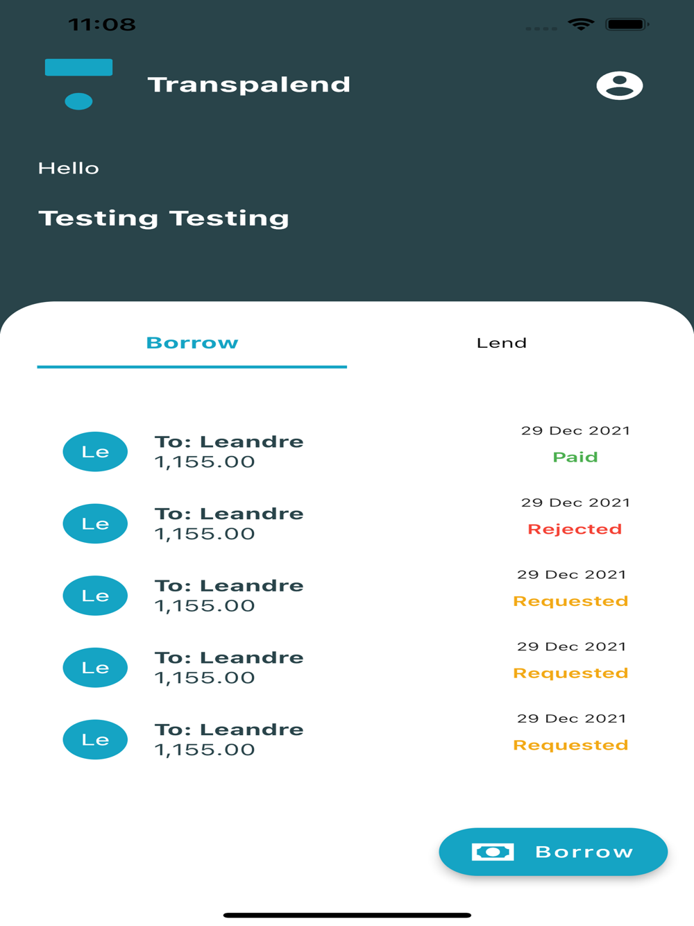 With Transpalend, a user can borrow directly from contacts. Get notified if the lender approved the request. The app tracks and notifies the borrower and the lender on payment dates and amounts, as well as tracking the status of each loan. In the near future, we want to improve the experience by generating a written agreement that can be used as a legal document in case there is any dispute between two parties. It is a better way to lend money with transparency and certainty, removing the awkwardness of reminding someone you respect to pay you back.