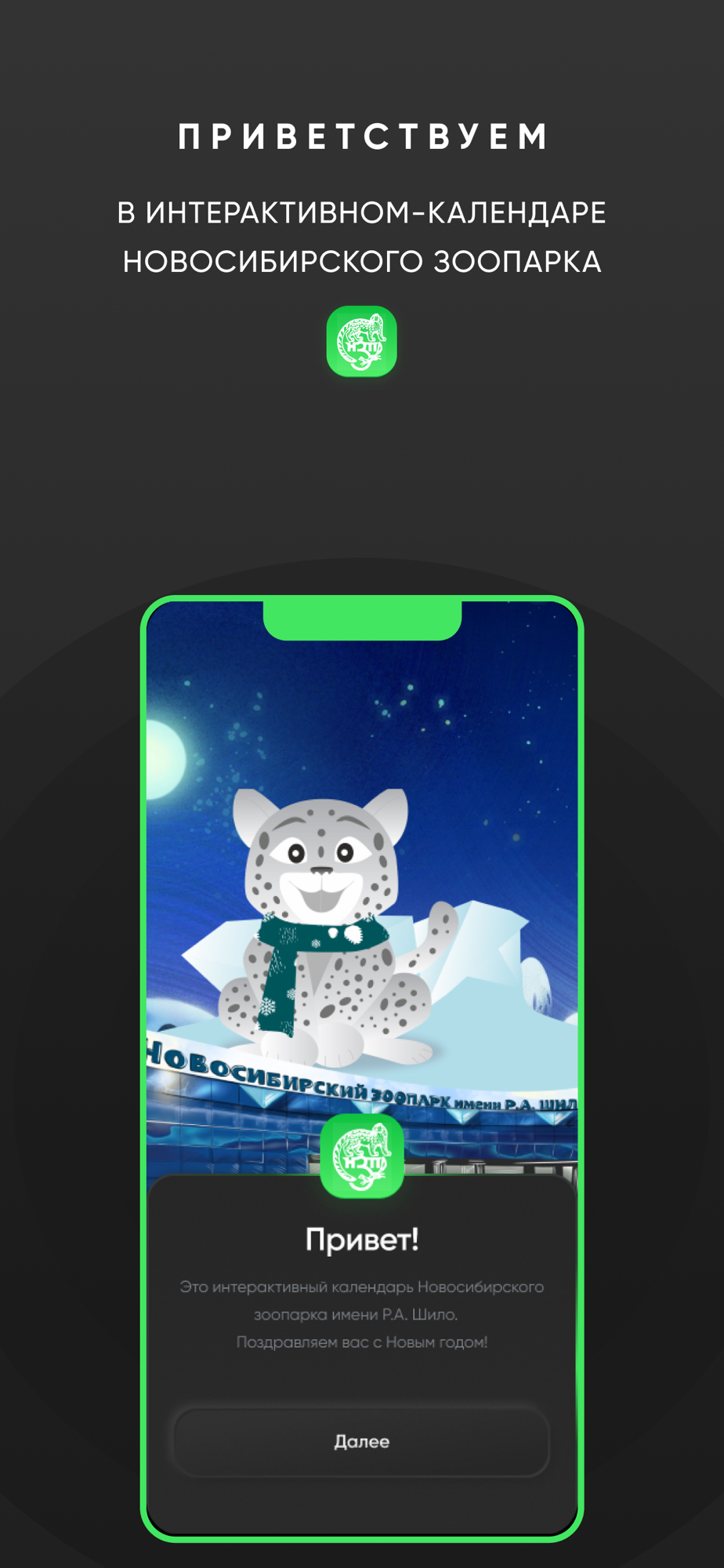Дополненная реальность в нашем приложении позволяет увидеть и познакомиться поближе с обитателями Новосибирского зоопарка имени Р.А. Шило, просто наведя камеру на изображение в календаре.