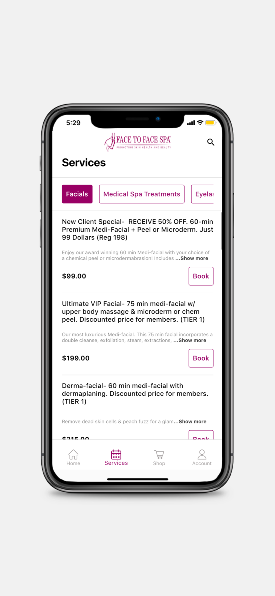 - Find the nearest Face to Face Spa and book your appointments with a click of a button.