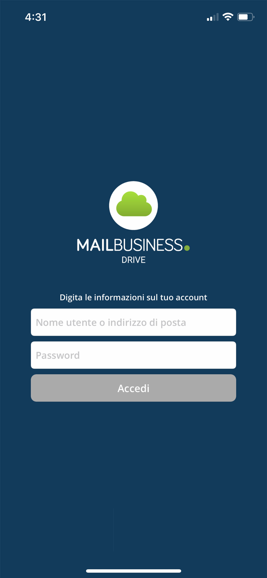 L’App Drive è l’estensione del prodotto Libero Mail Business; effettua il login con la tua casella Mail Business e accedi allo spazio Drive incluso nella tua mail su dominio. Per creare un account e ottenere informazioni sul servizio, visita il sito Mail Business di Libero.
