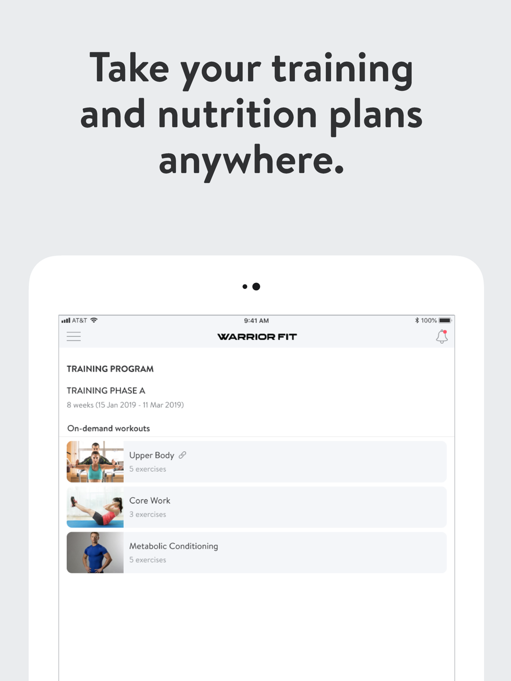 With the Warrior Fit App, you can start tracking your workouts and meals, measuring results, and achieving your fitness goals, all with the help of your personal trainer.