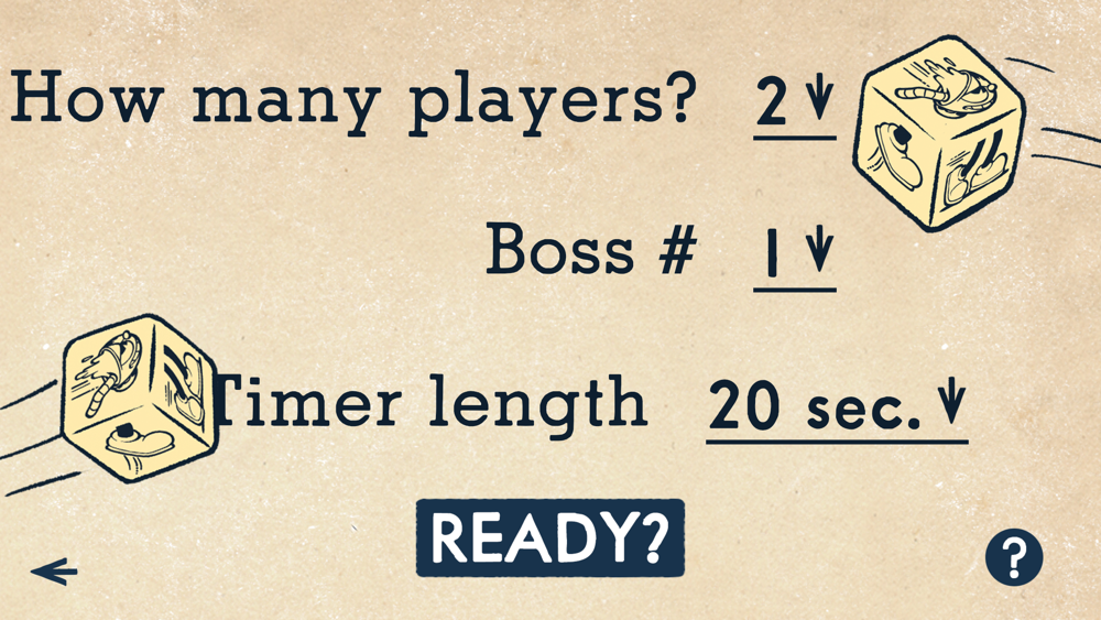 Use this app to conveniently keep time and calculate scores for your Rounds! Start by setting a player count, Boss #, and timer length on the next screen. Once your Attack Cards are revealed, start the timer. A brawl is surely brewing!