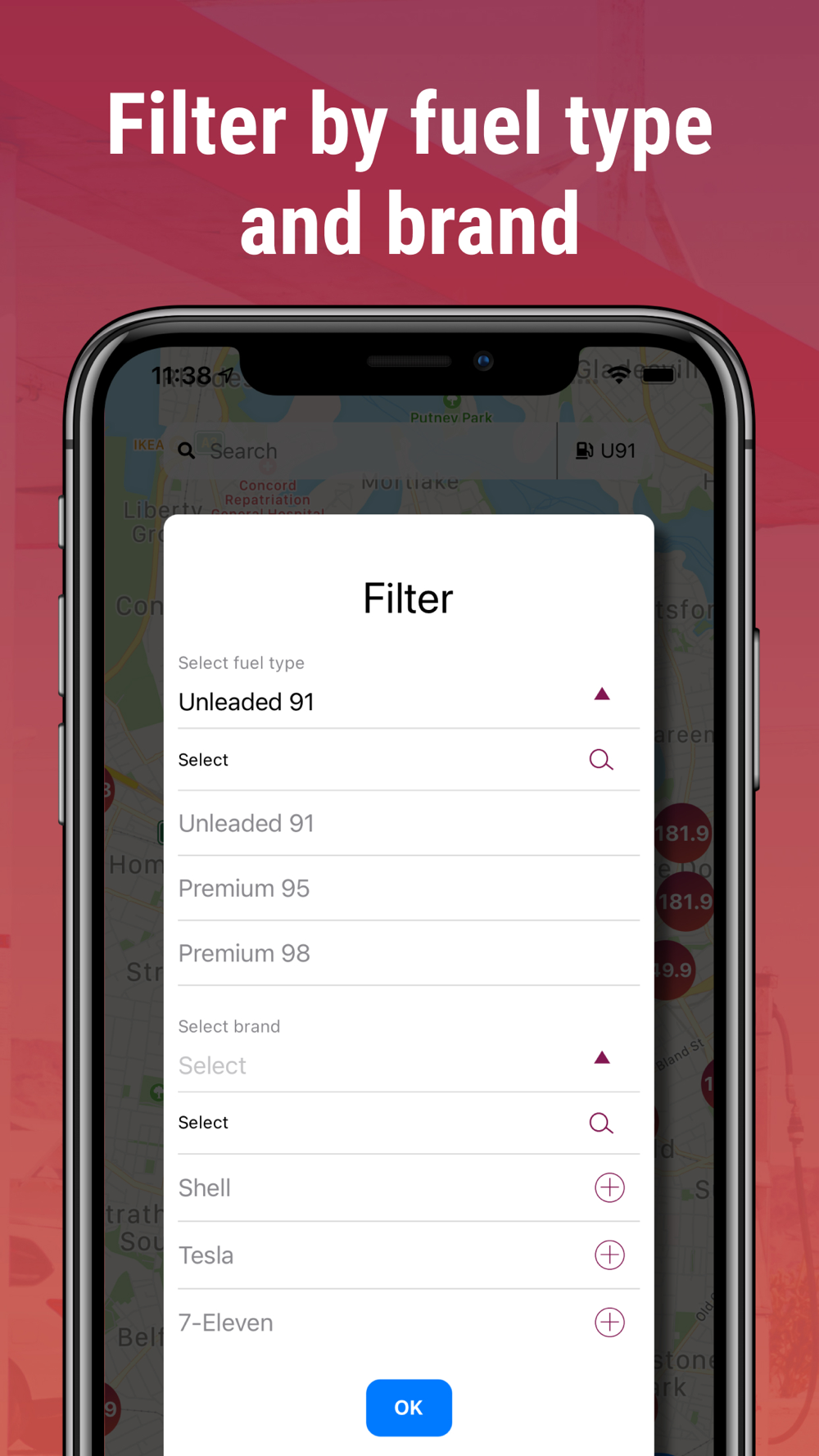 With our app you will be able to save up to $20 every time you refuel, finding the cheapest petrol station nearby.