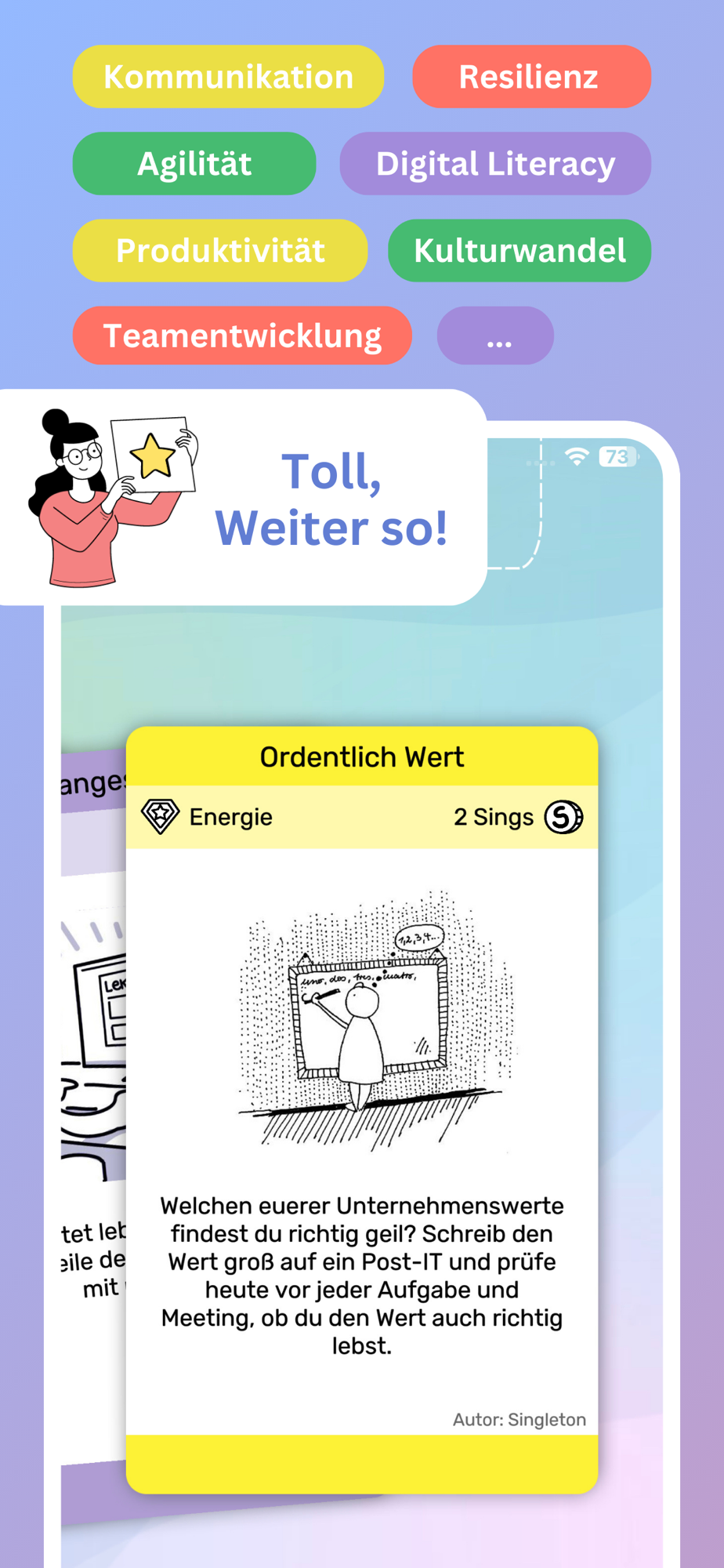 Bist Du bereit, eine neue Ära der Teamstärkung und organisatorischen Transformation zu erleben? Singleton Quest, eine innovative App, kombiniert Mikrointerventionen mit Gamification, um persönliches Wachstum, kulturellen Wandel und die Verwirklichung von Unternehmenswerten zu fördern. Das perfekte Werkzeug, um Dein Team zu beflügeln und Deine Organisation auf das nächste Level zu heben.