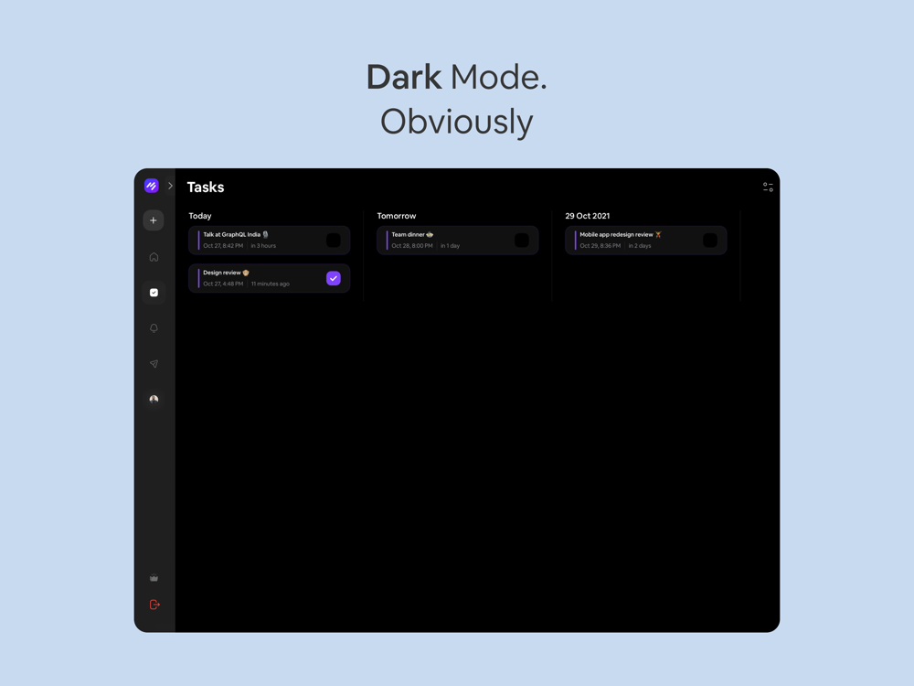 · Dark mode.