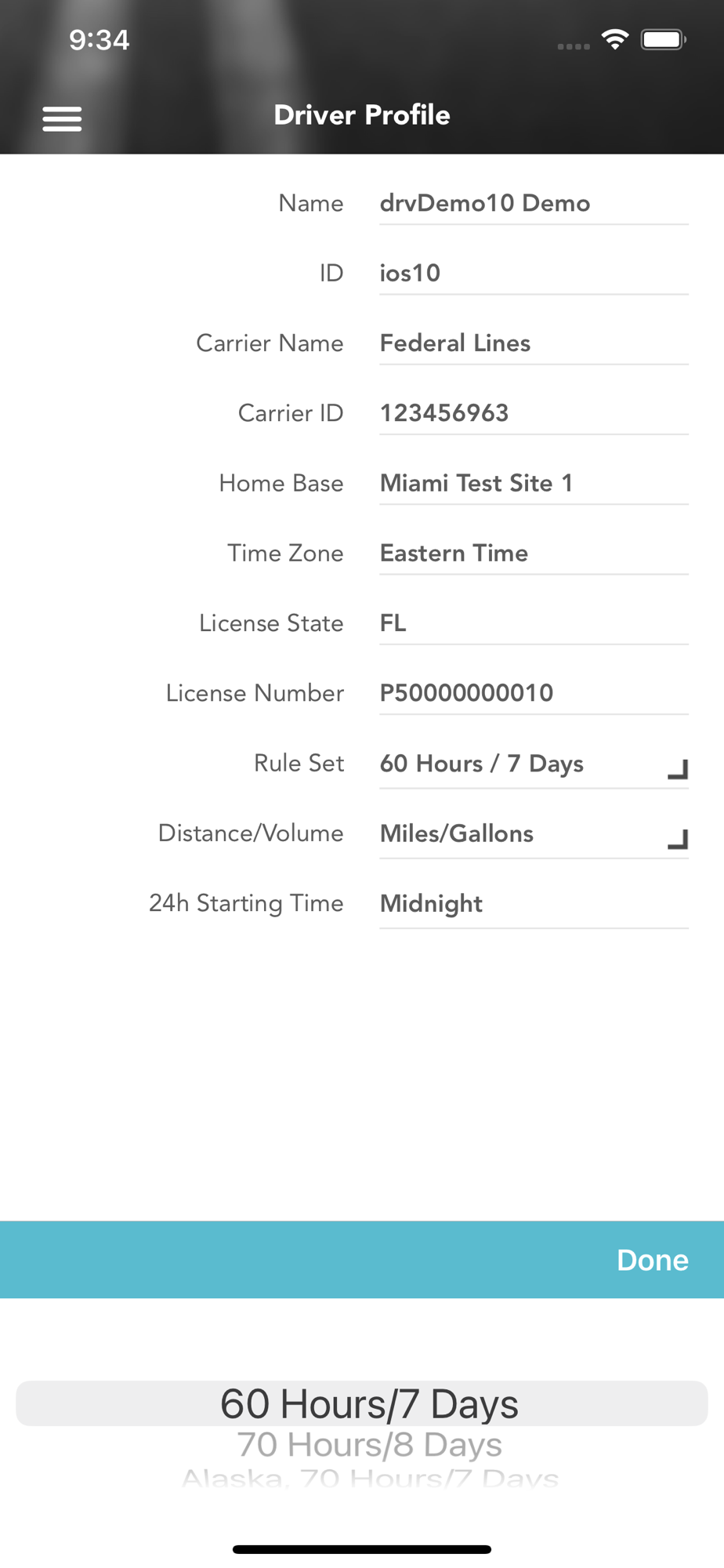 DOT FMCSA self-compliant application to record driver duty status and meet the following regulations: