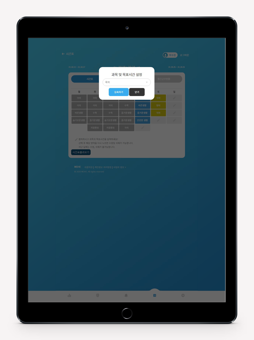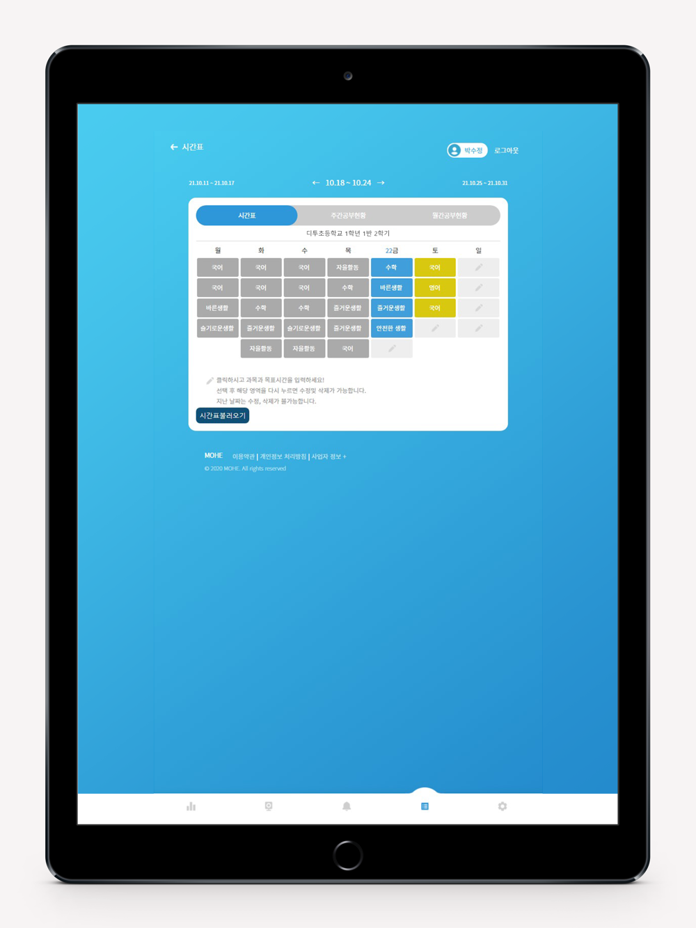 MOHE는 비대면 온라인 학습자의 집중력을 체크할 수 있습니다. 그 외에도 학습 시간표를 관리하여 학습에 도움을 주는 앱 입니다.