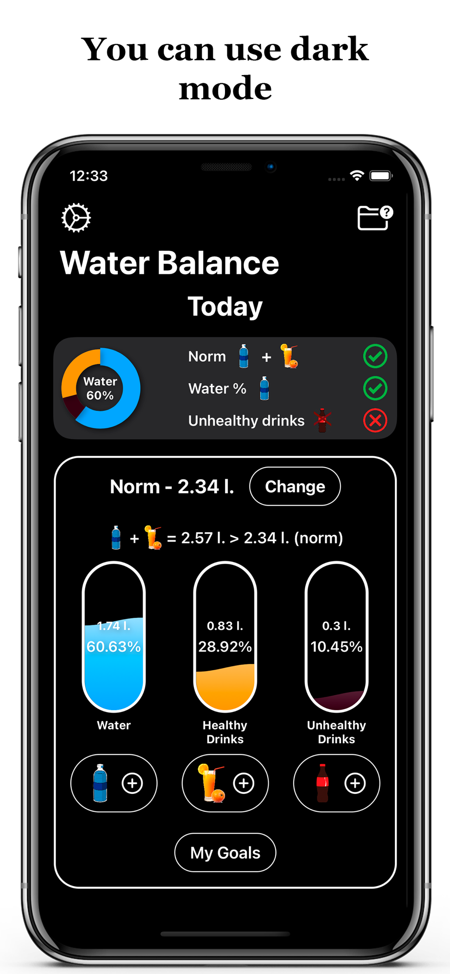 We have deliberately limited your data entry to three categories. This includes water, healthy and unhealthy drinks.
