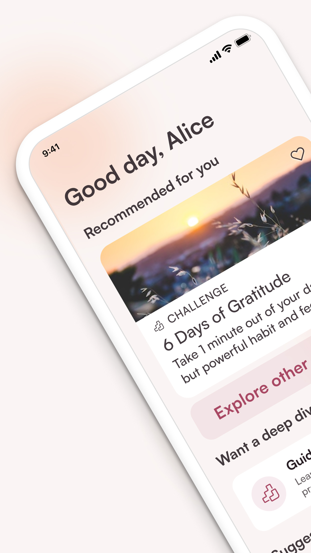 • Multiple tools, including guided meditation, journaling, breath work and more.