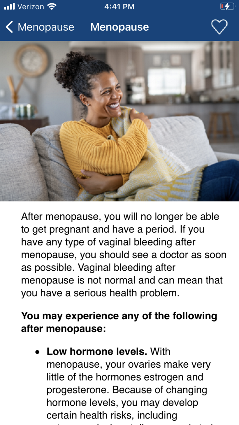 The app also provides fun insight on what women can do to feel healthier, more energetic and mentally sharper. Get great dietary tips, stress management tools and ideas, self-breast care examination education, preventative care ideas including vaccines and screenings, and fertility guidance and enhancement techniques.