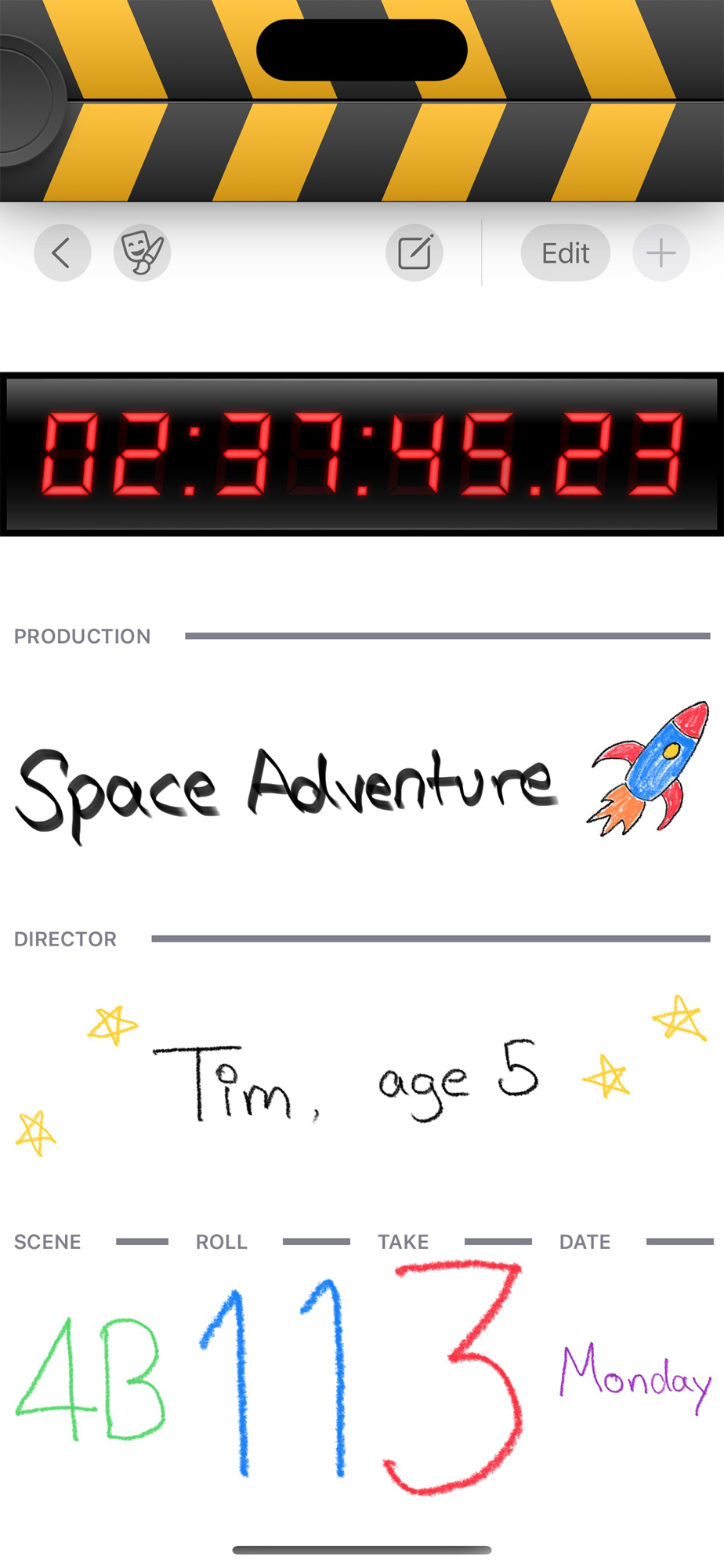 Unleash your creativity by drawing or sketching in color with your finger or, on supported devices, Apple Pencil. Toggle any text field between 'text' and 'drawing', and personalize your boards with fun hand-drawn elements. Let your creativity run wild with Take One, where every field becomes a canvas for your imagination.